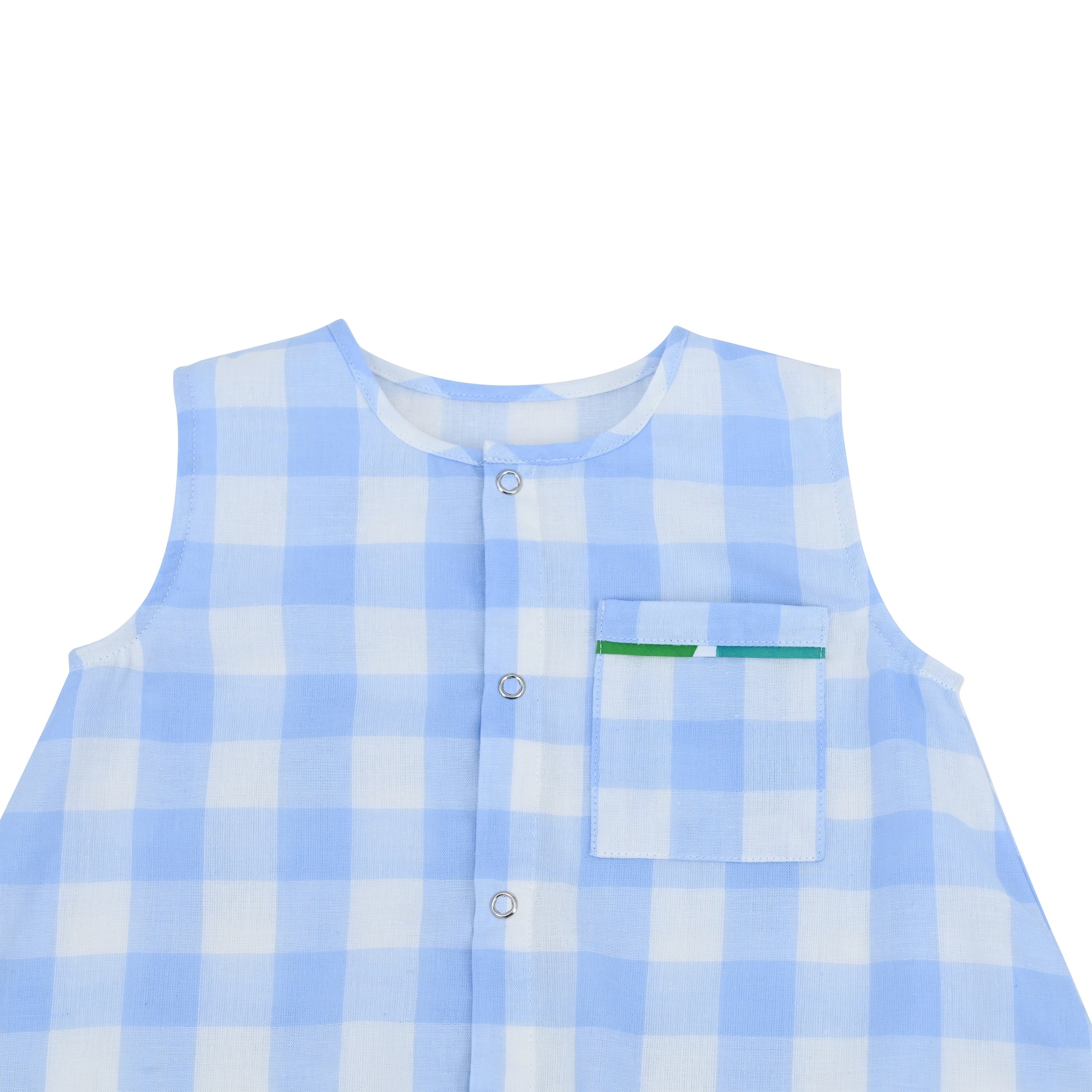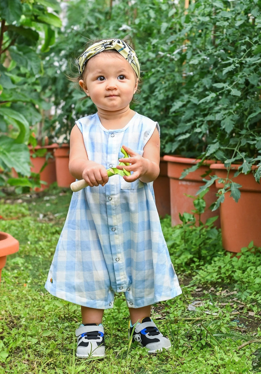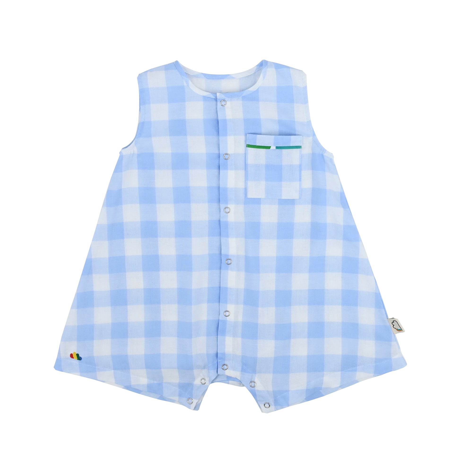 BABY BLUE CHECK PRINT SLEEVE-LESS PLAYSUIT