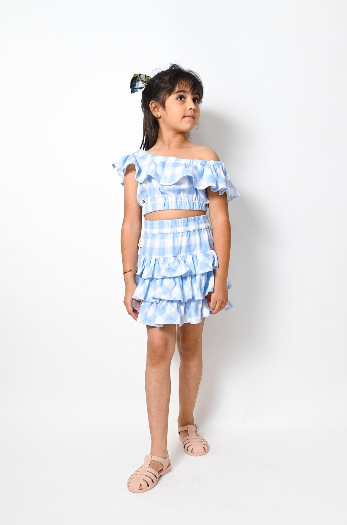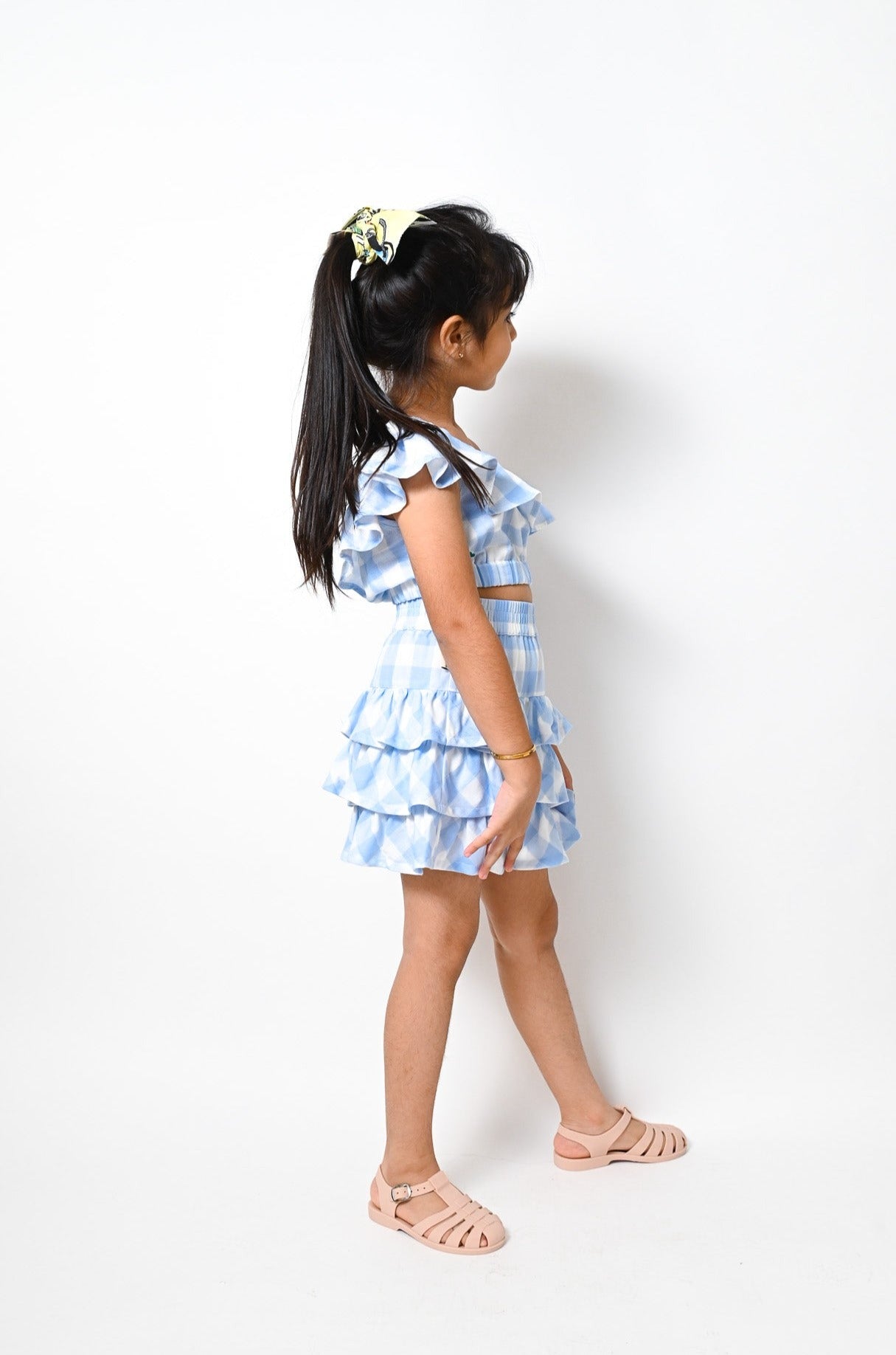 BABY/KIDS BLUE CHECK PRINT RUFFLES SKIRT