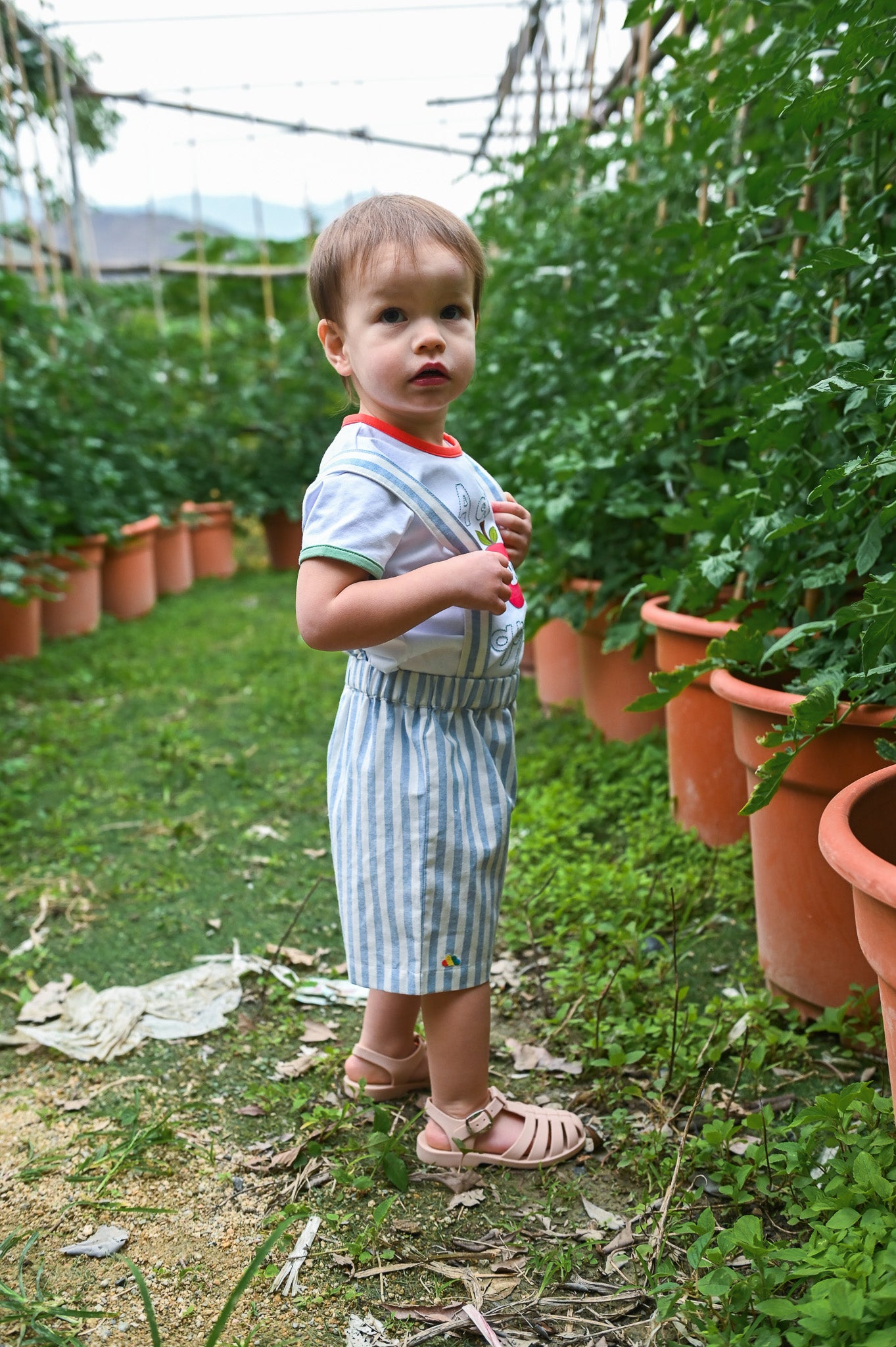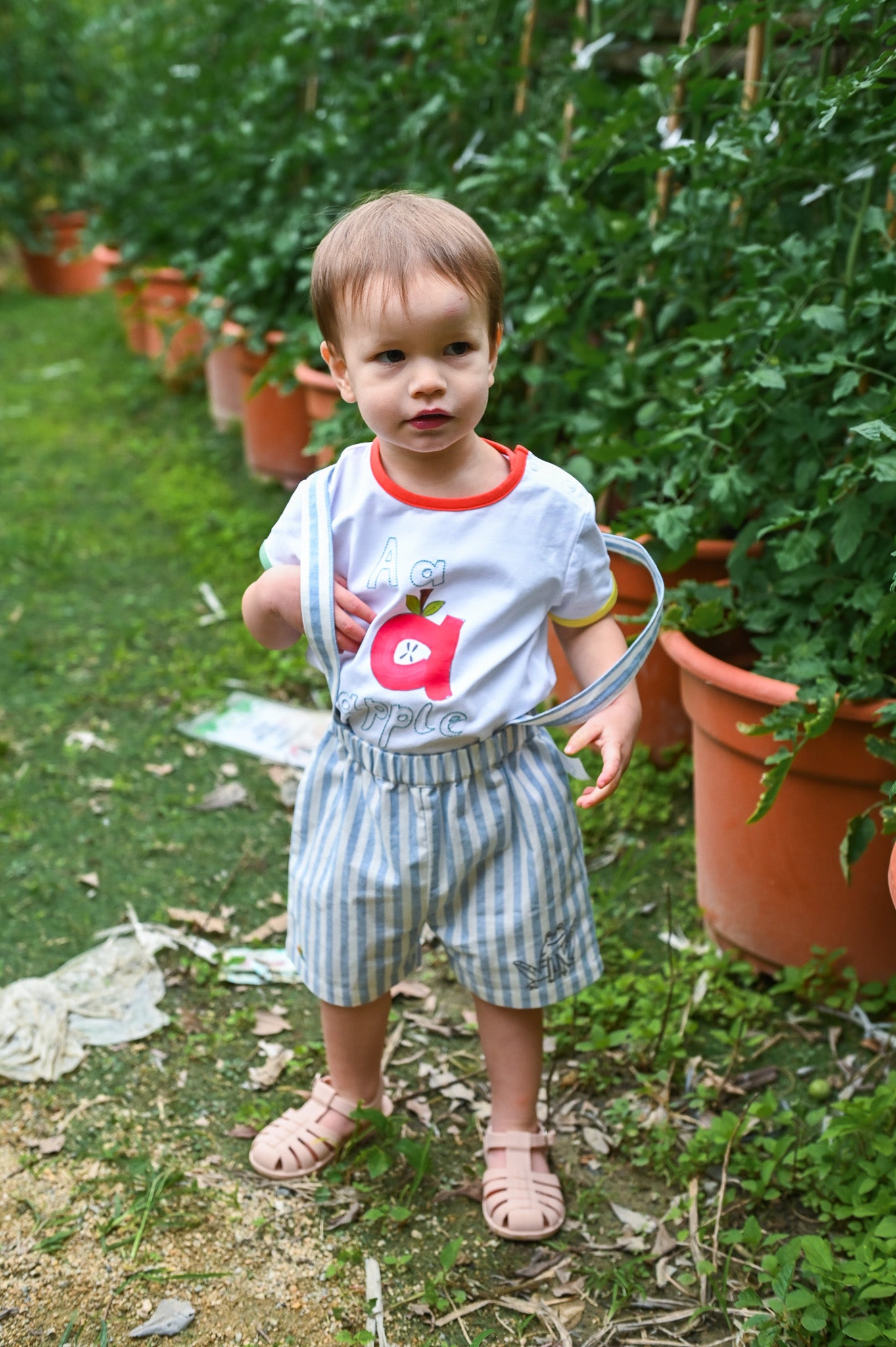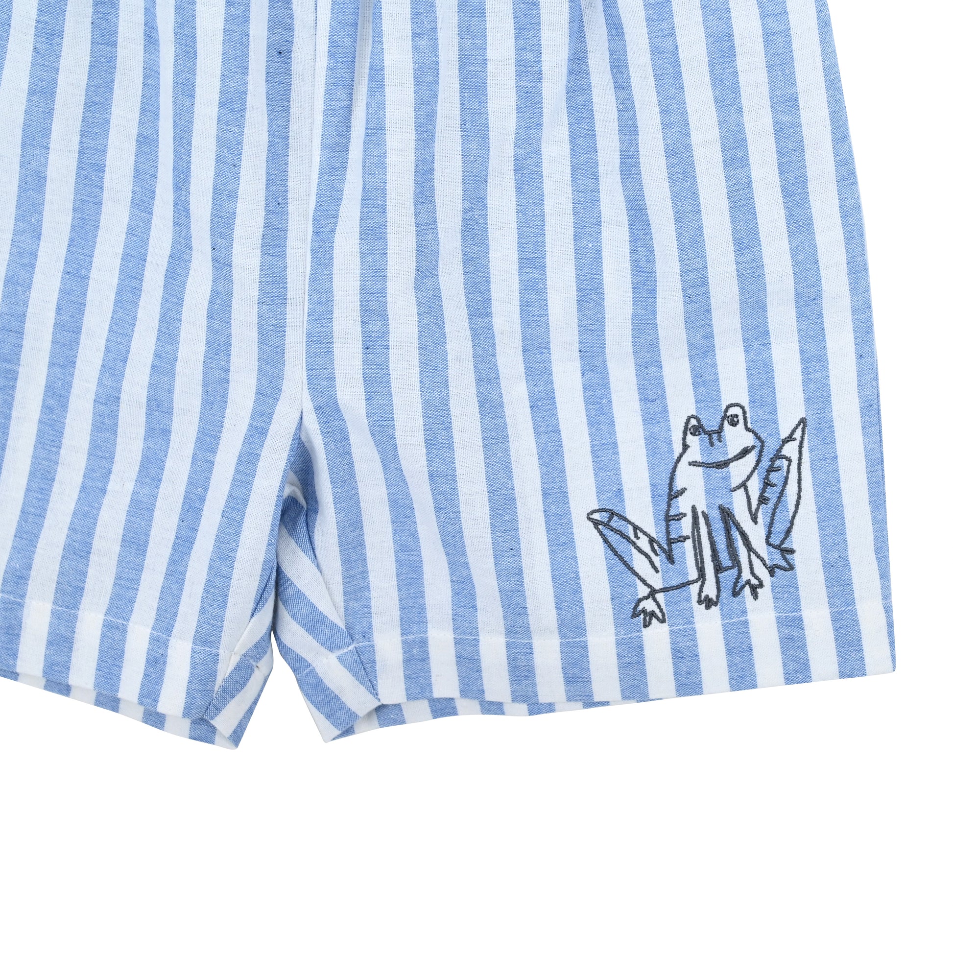 BABY/KIDS BLUE STRIPE FROG PRINT SHORTS WITH SUSPENDER