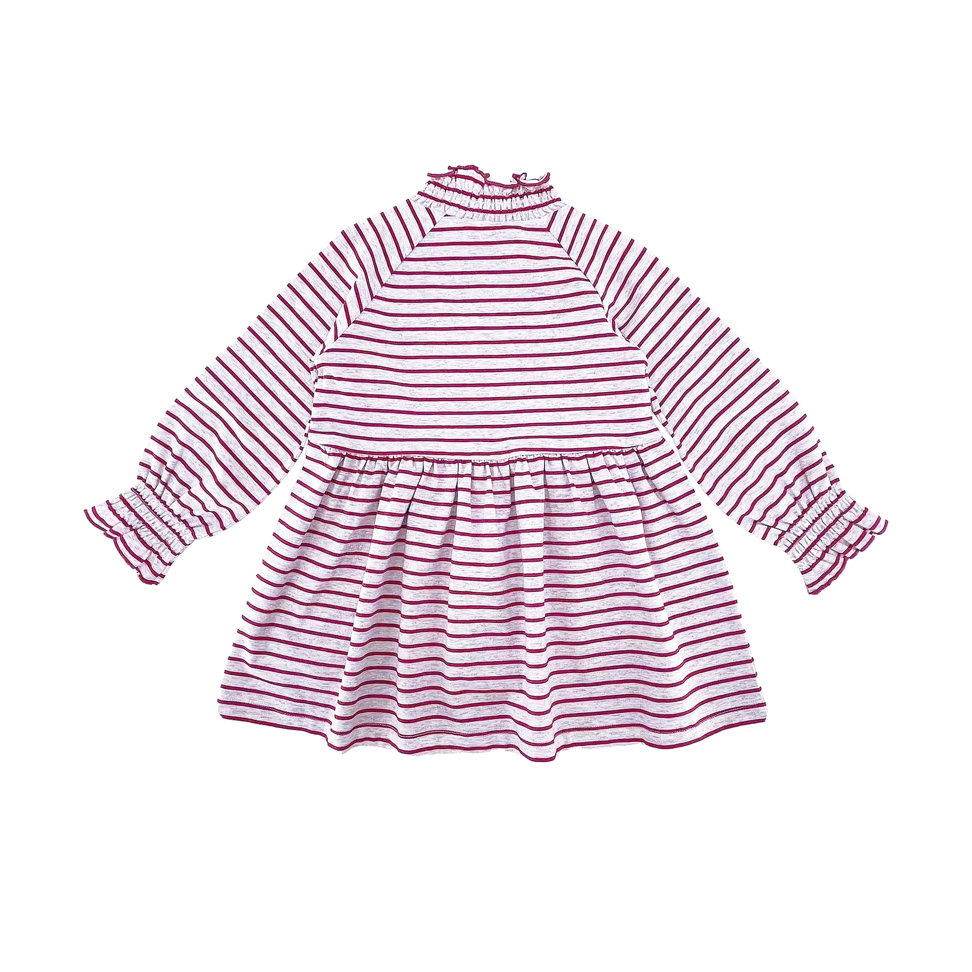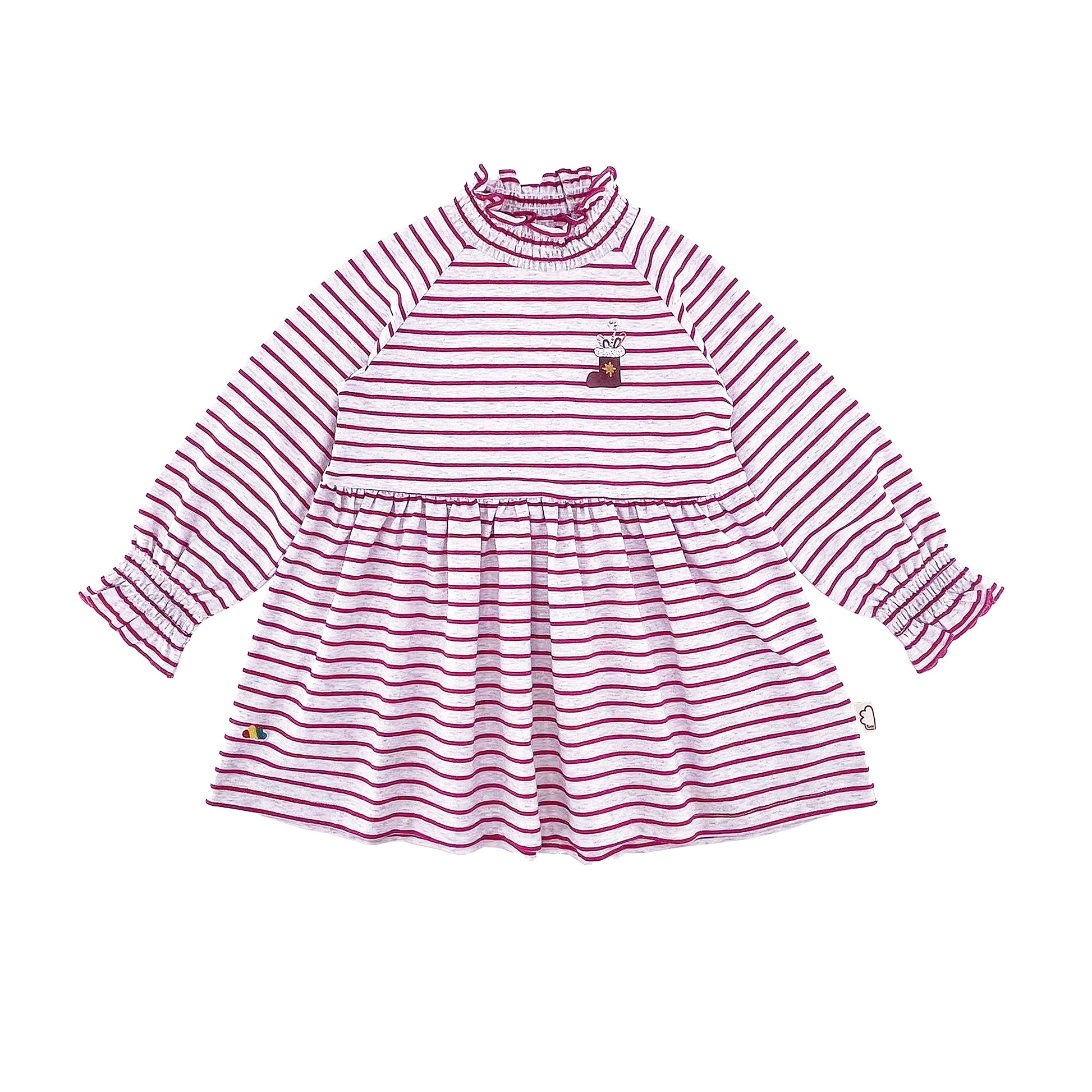 BABY/KIDS PINK STRIPE SANTA BOOT PRINT LONG SLEEVE DRESS