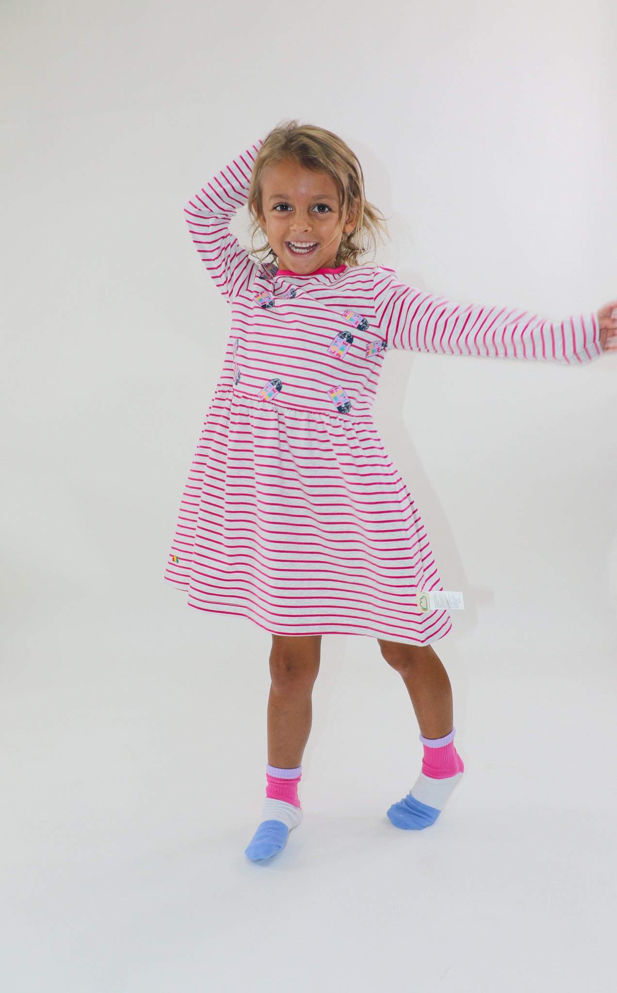 BABY/KIDS PINK VINYL PRINT LONG SLEEVE DRESS