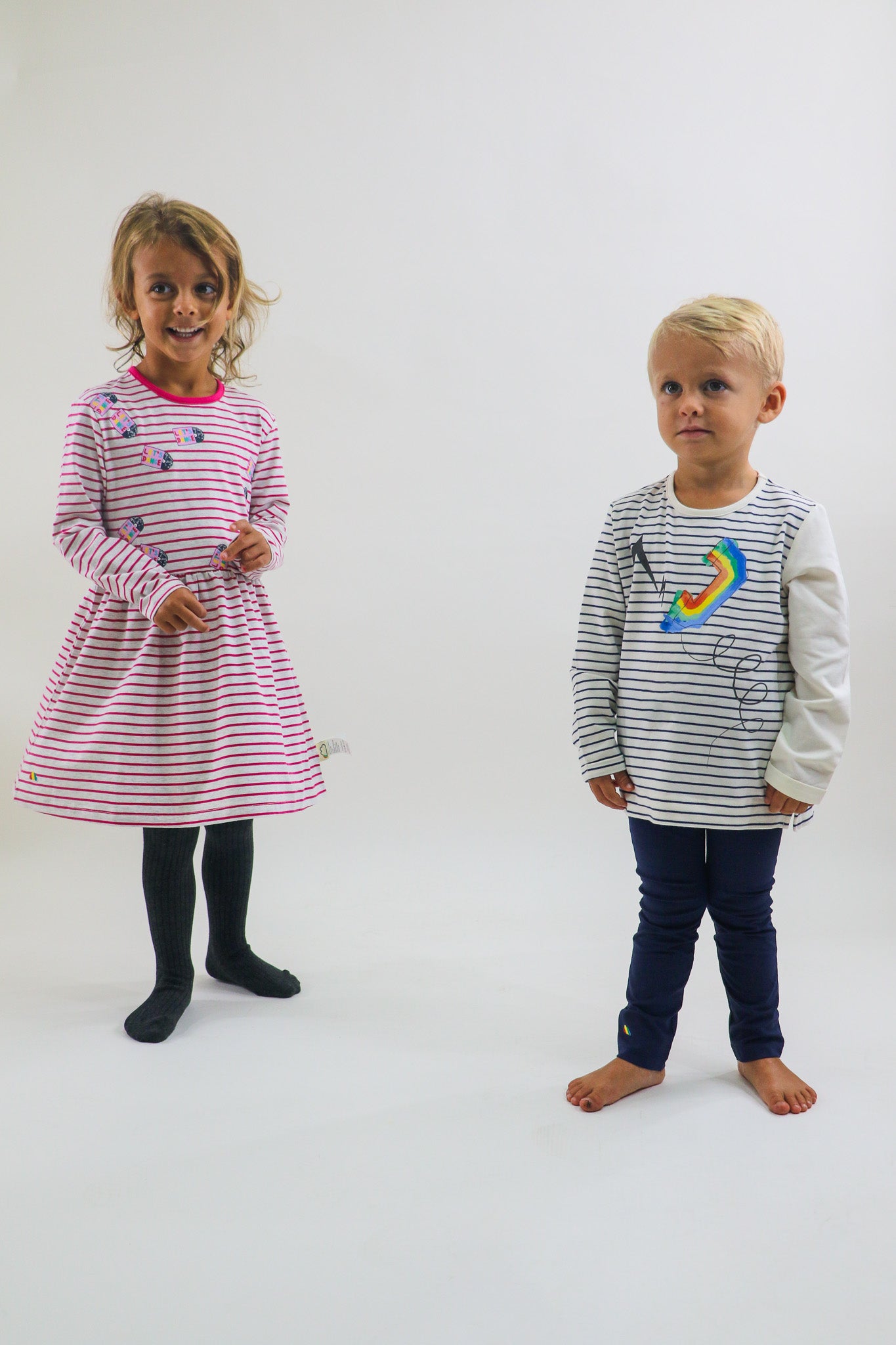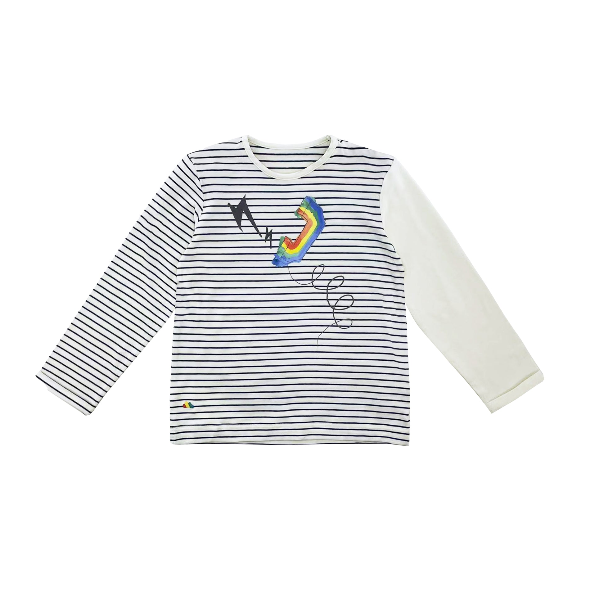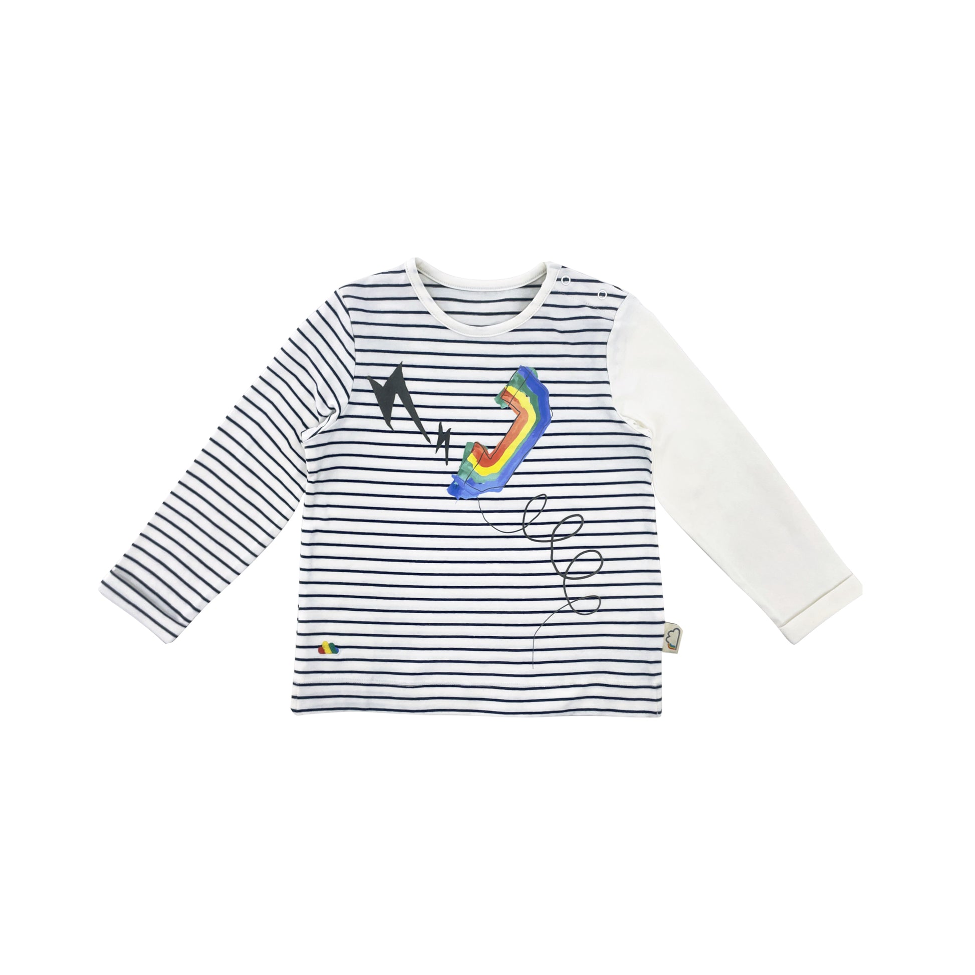 BABY/KIDS NAVY STRIPE RAINBOW TELEPHONE PRINT LONG SLEEVE TOP