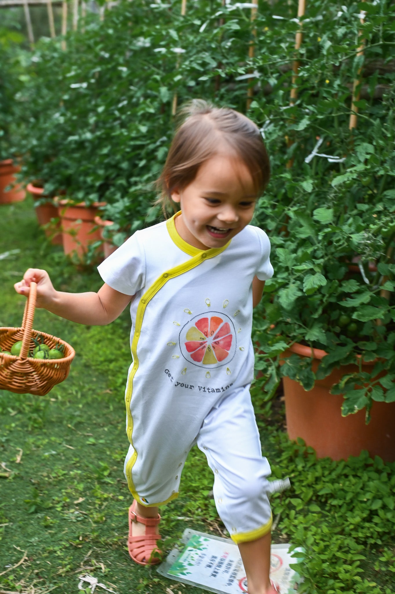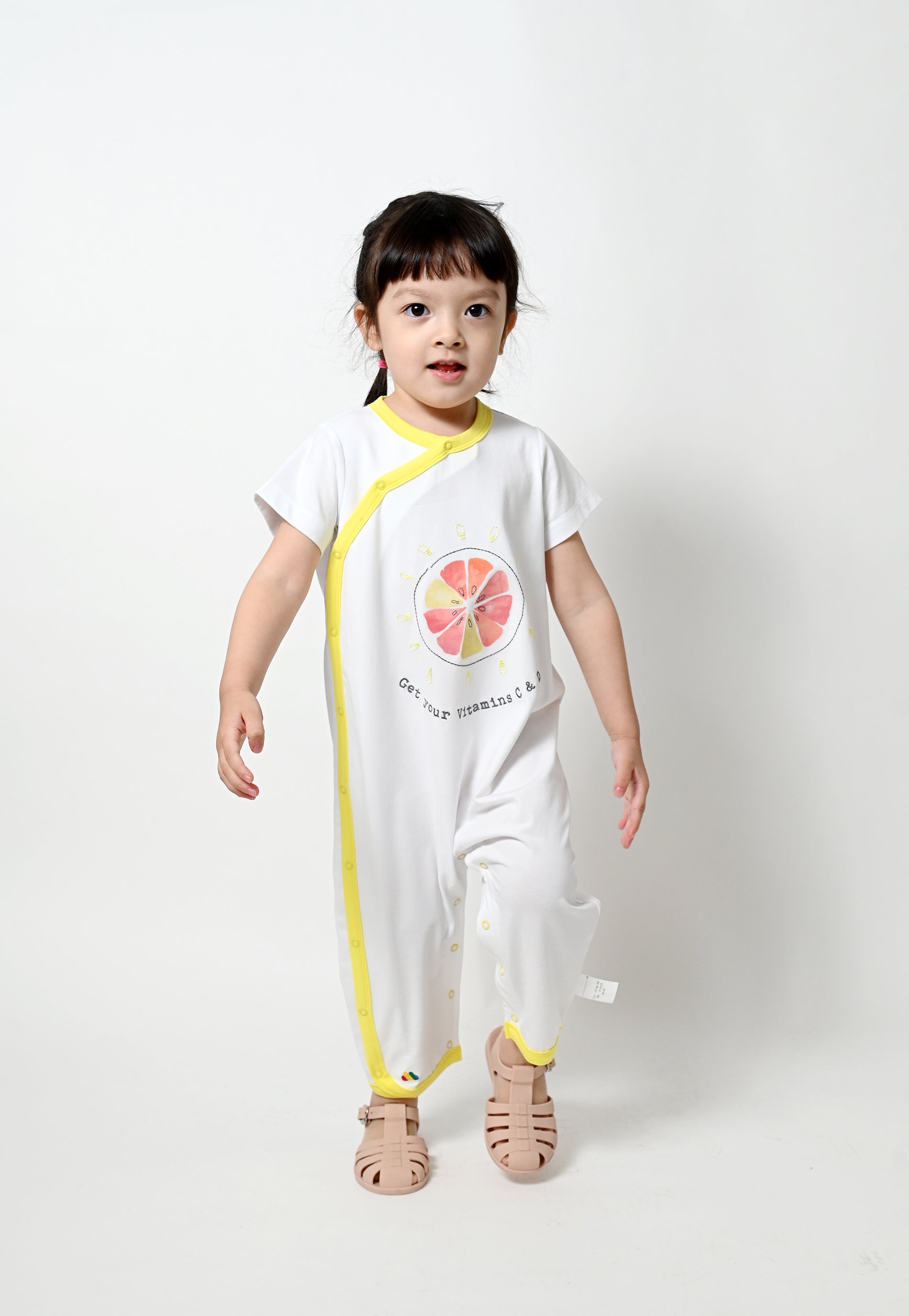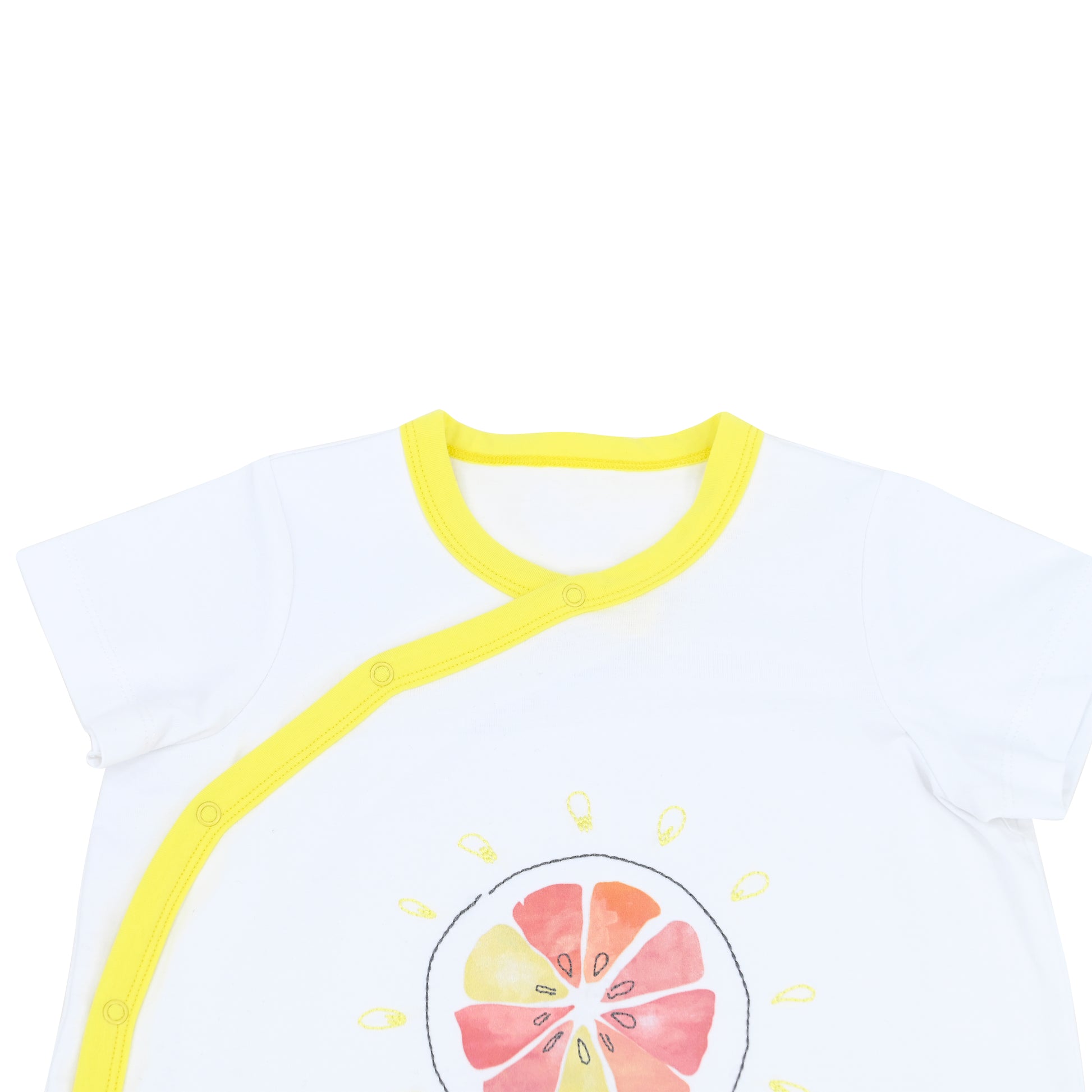BABY LEMON PRINT SIDE BUTTON SHORT SLEEVE PLAYSUIT