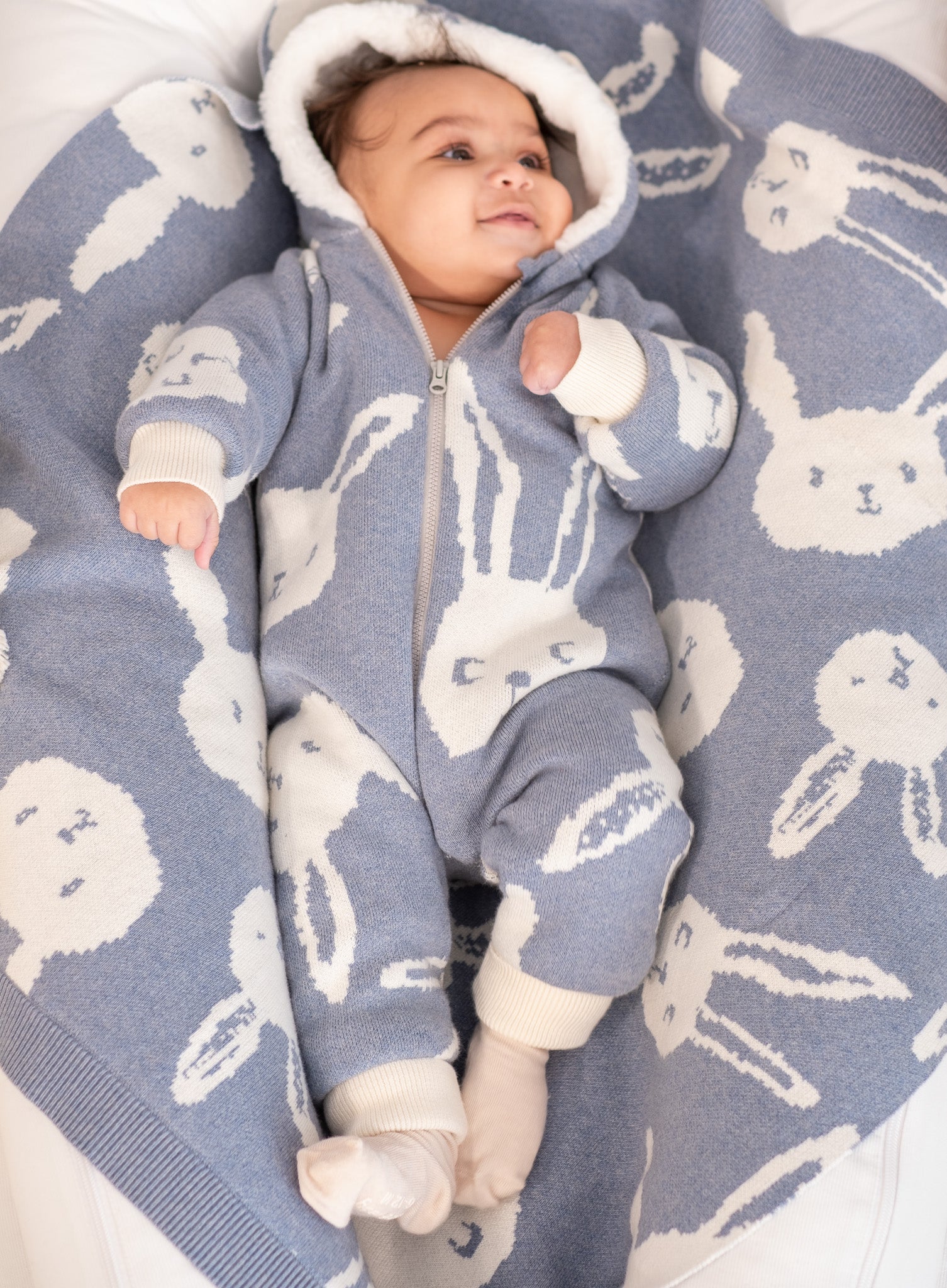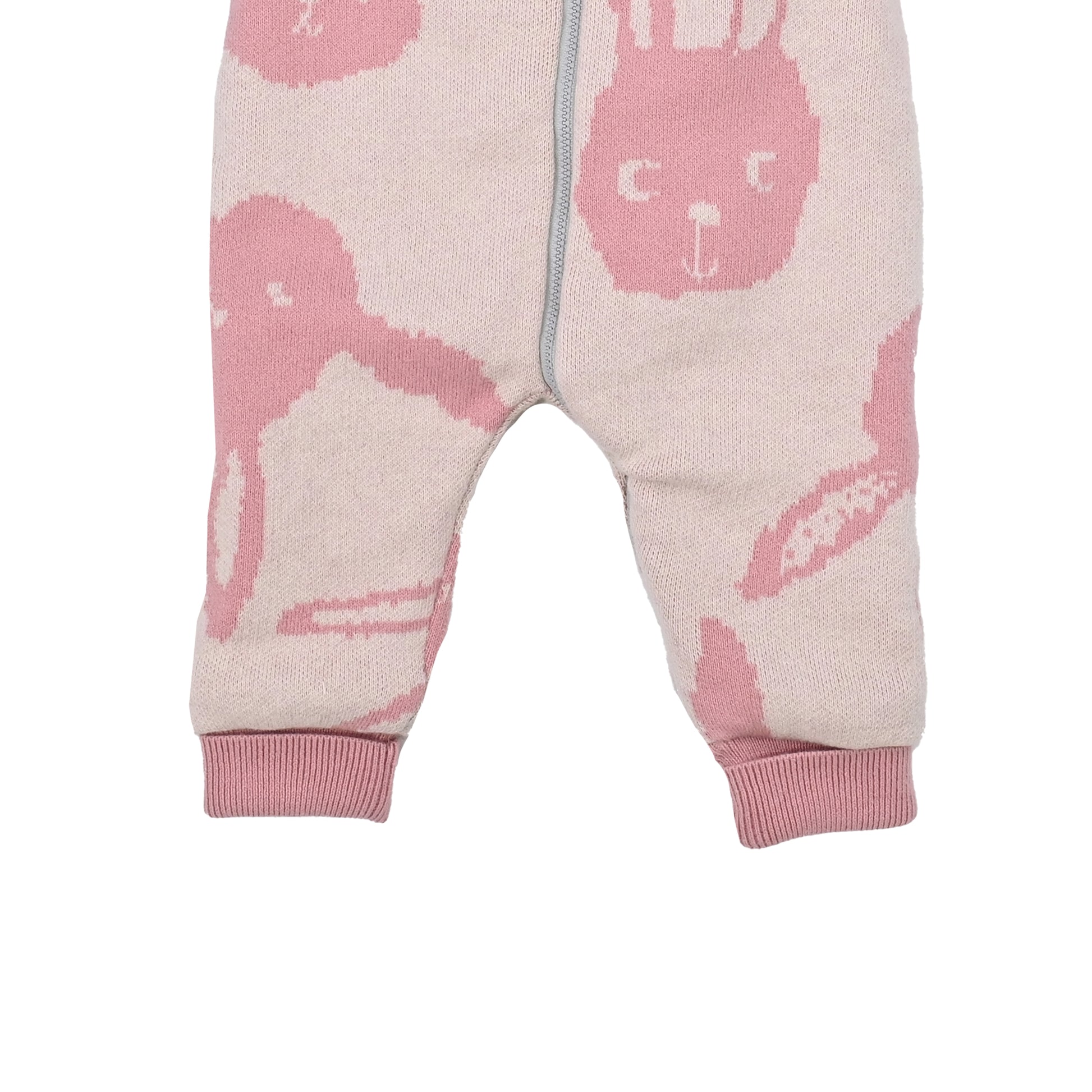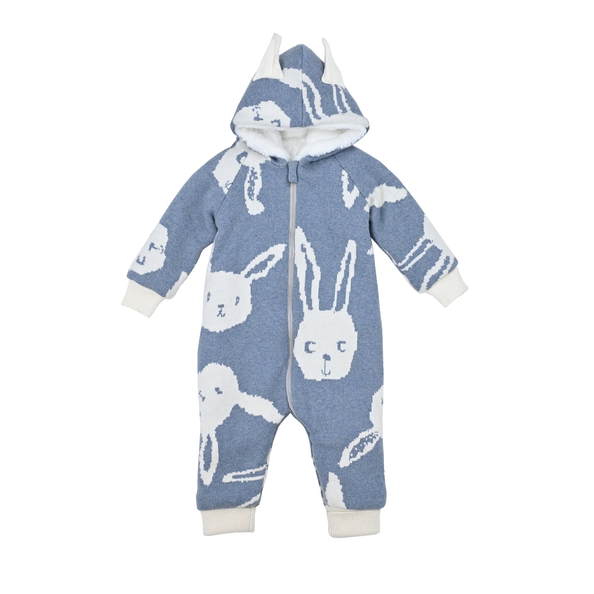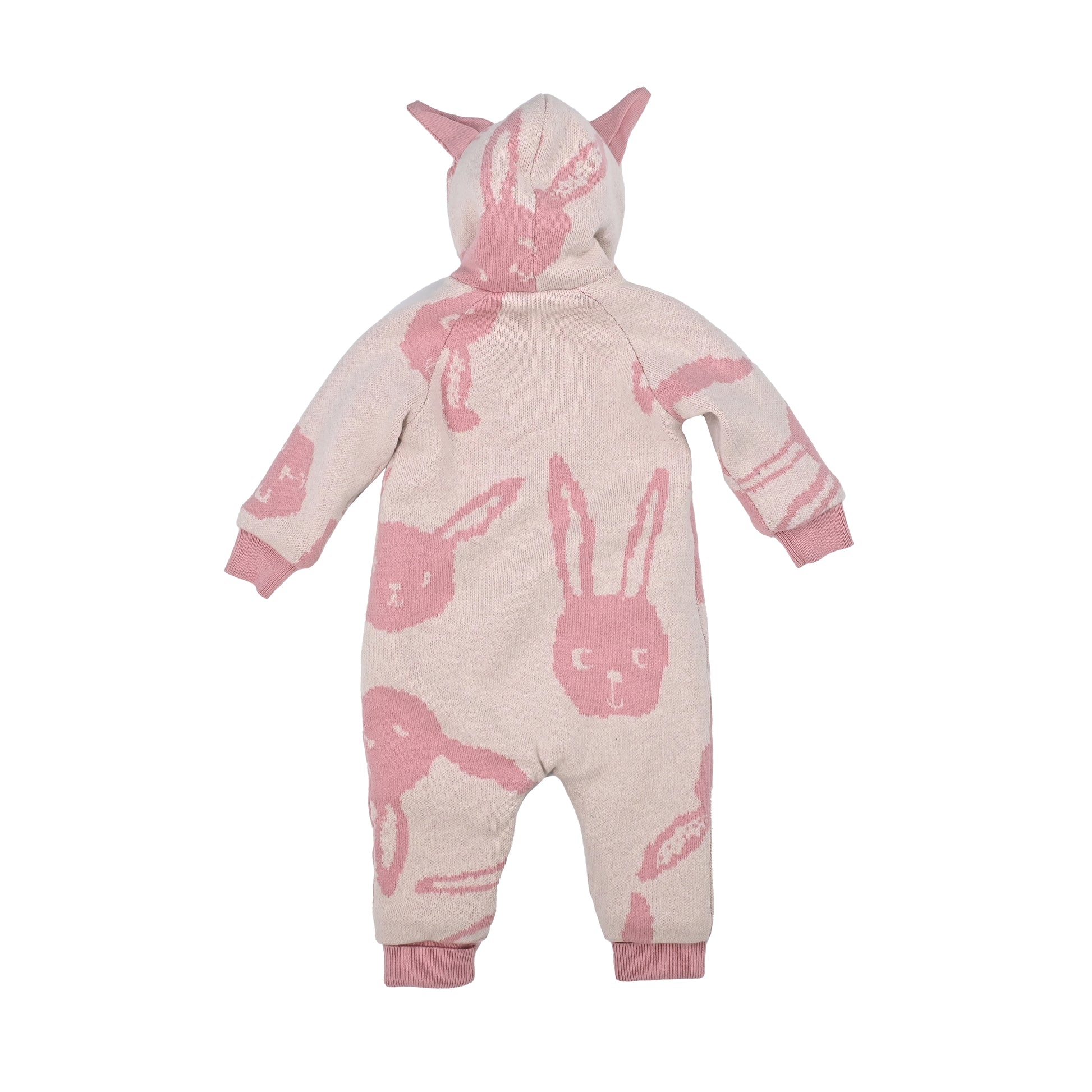 BABY RABBIT PRINT FUR LINED RABBIT EAR PLAYSUIT