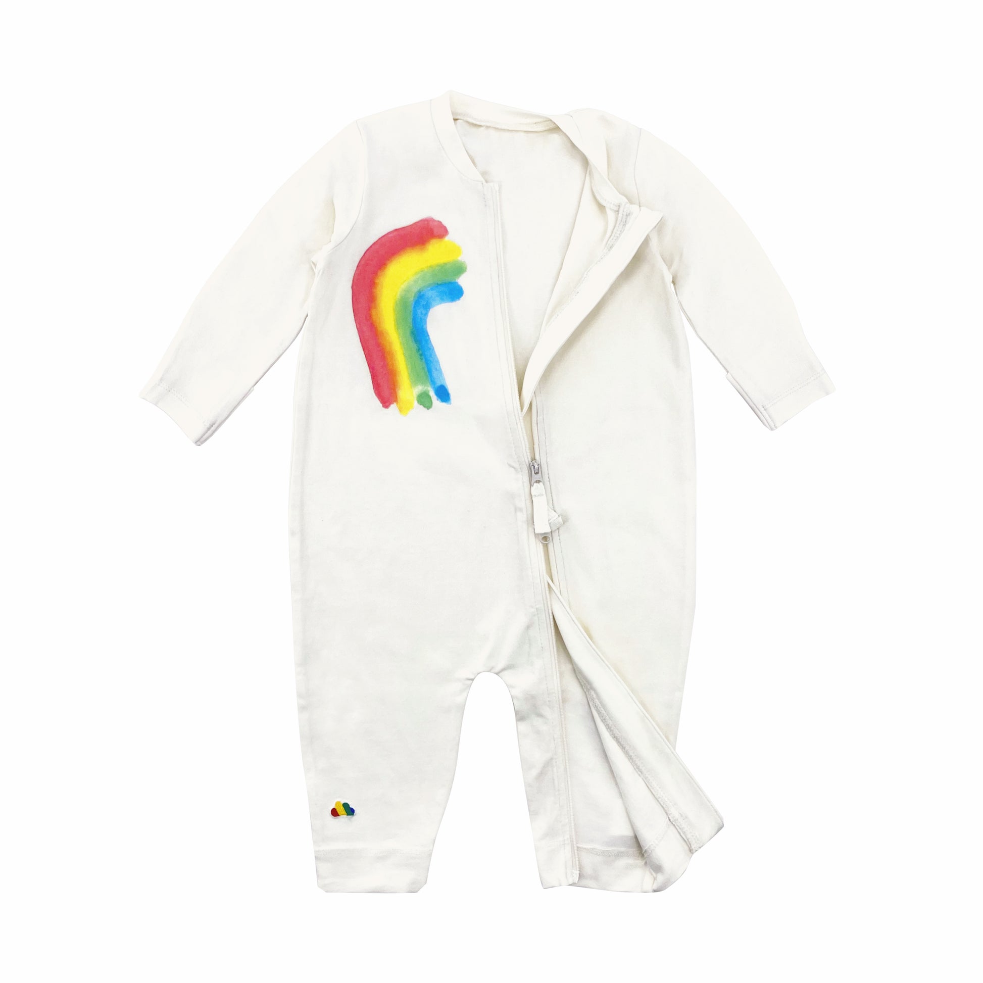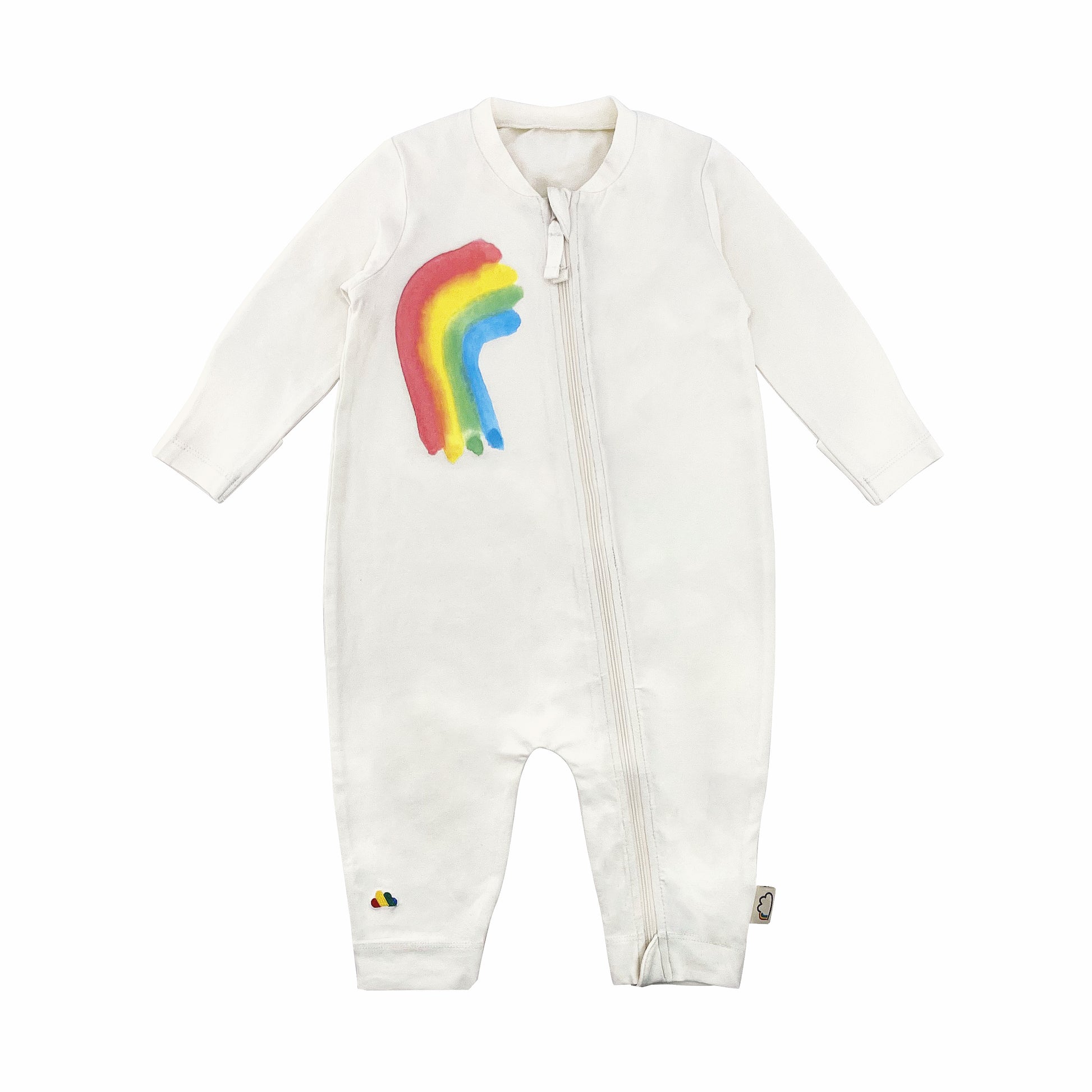 BABY RAINBOW PRINT LONG SLEEVE ZIP UP PLAYSUIT