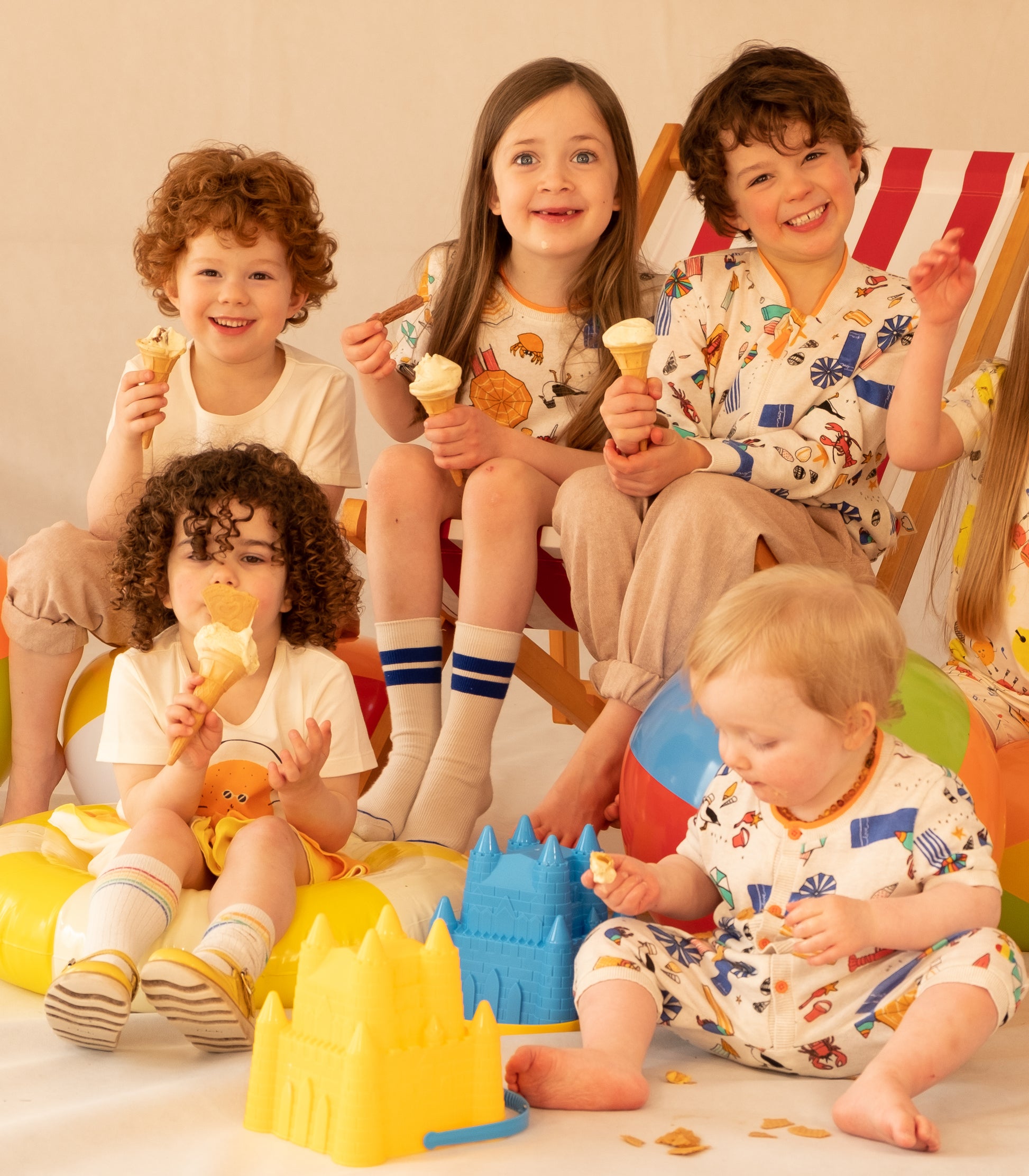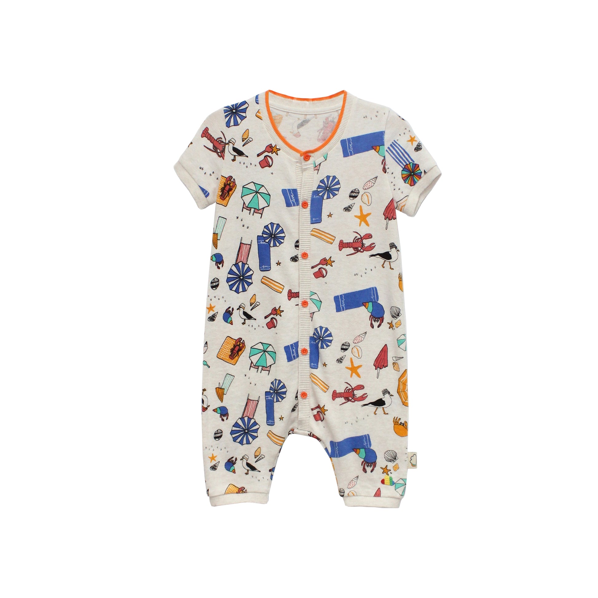 BABY BEACH PRINT BUTTON SHORT-SLEEVES PLAYSUIT