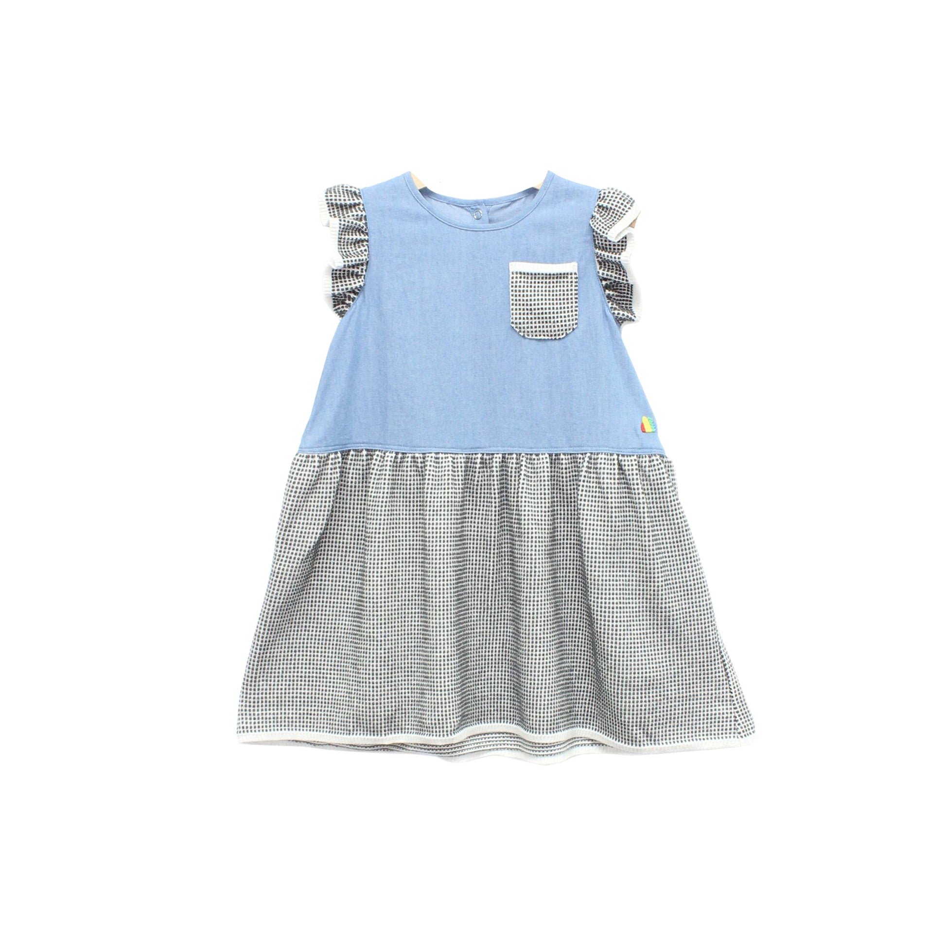 KIDS CONTRAST CHAMBRAY AND GREY KNIT DRESS