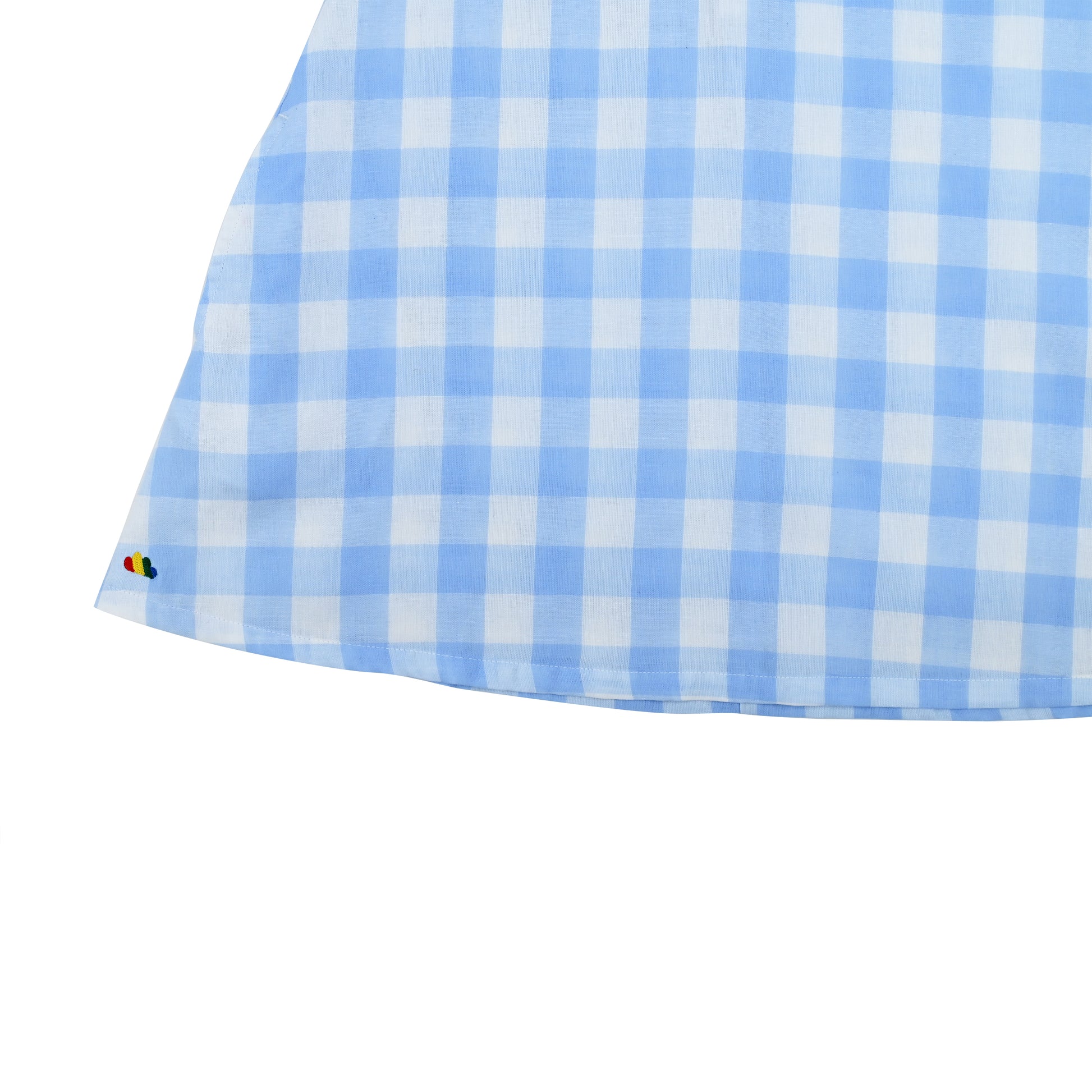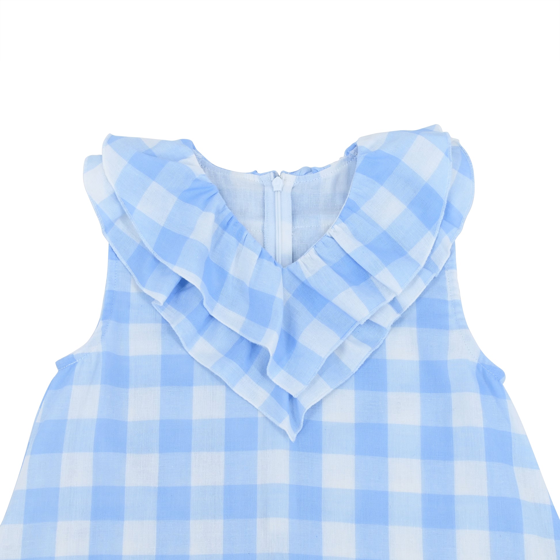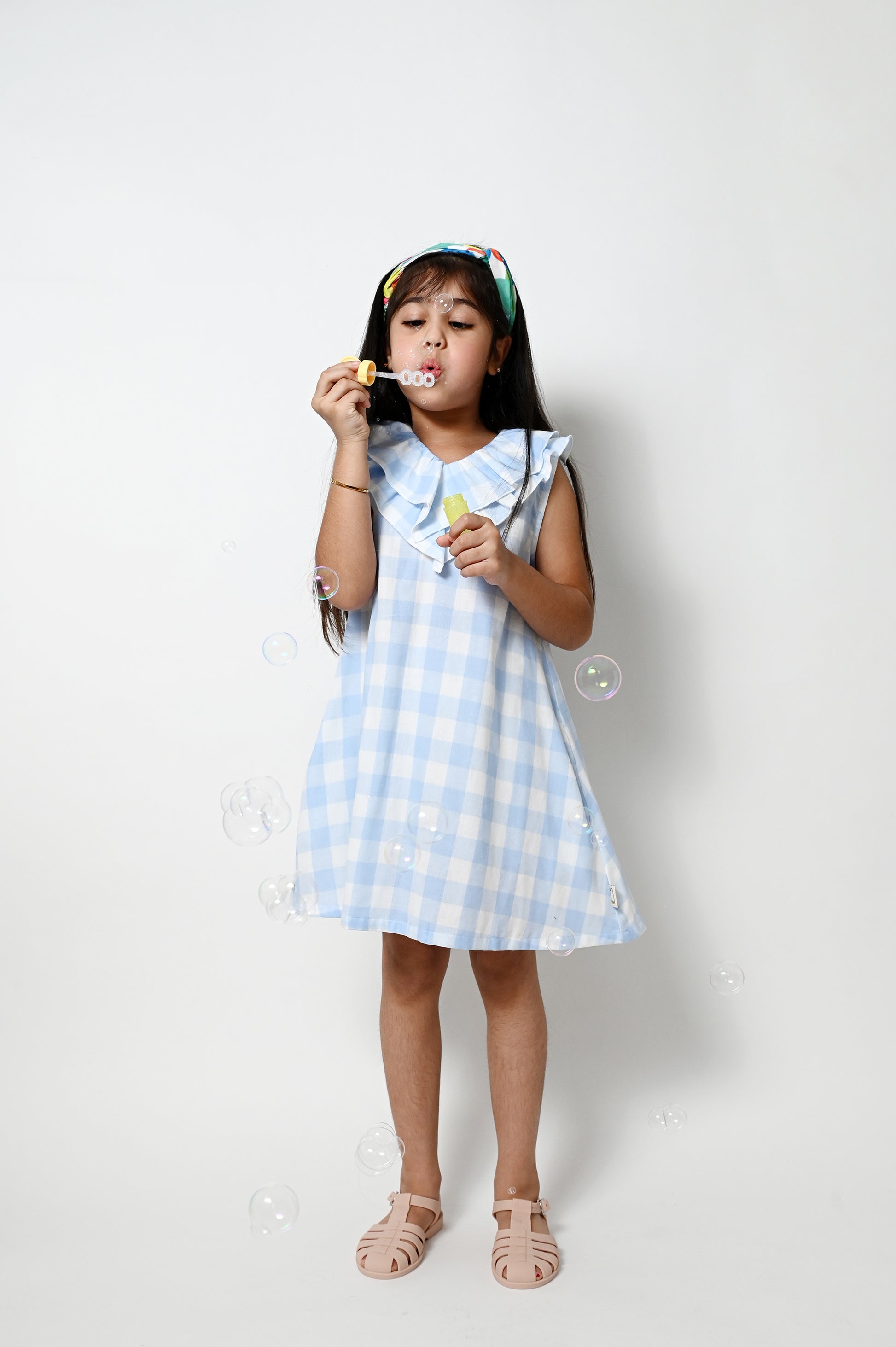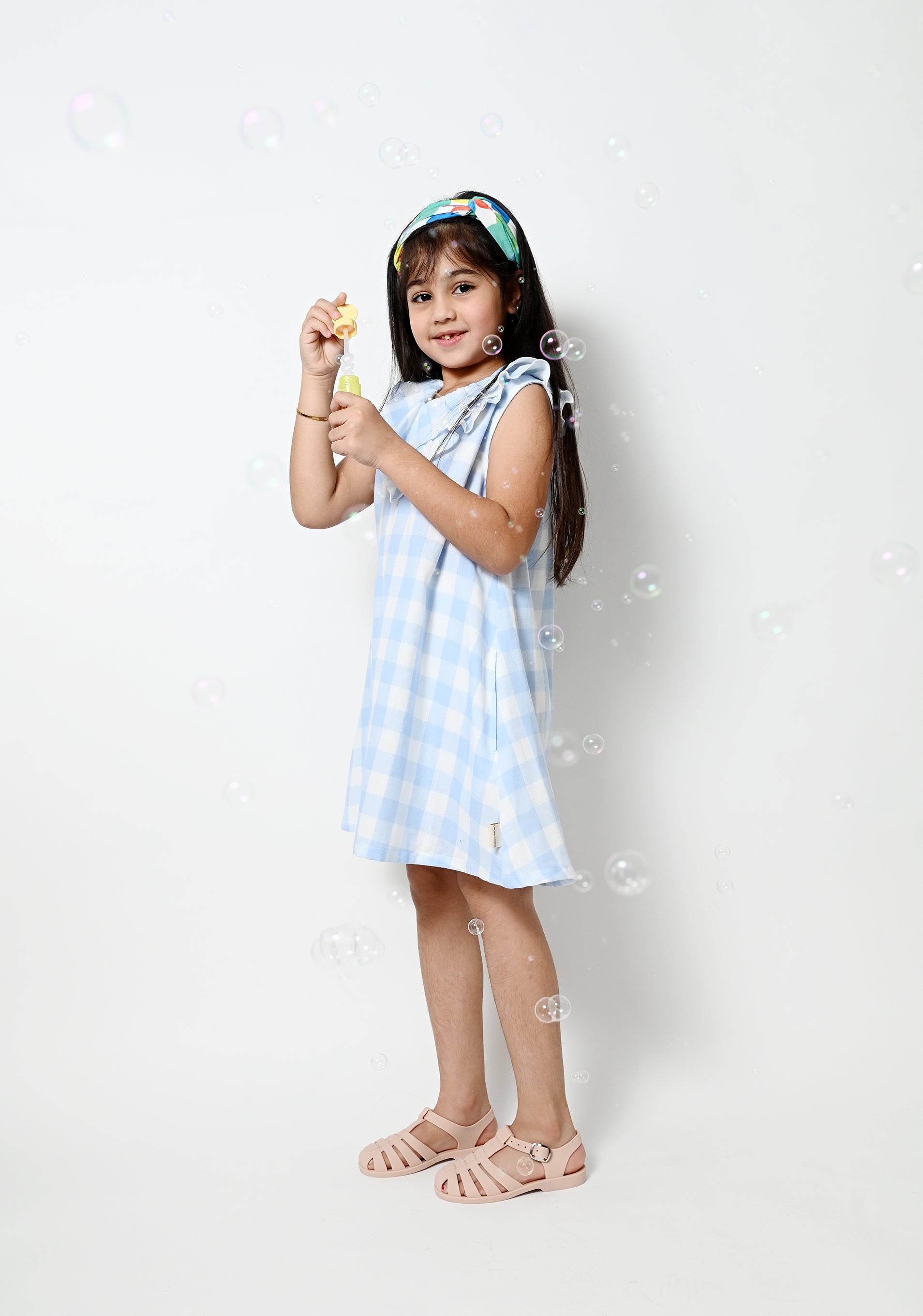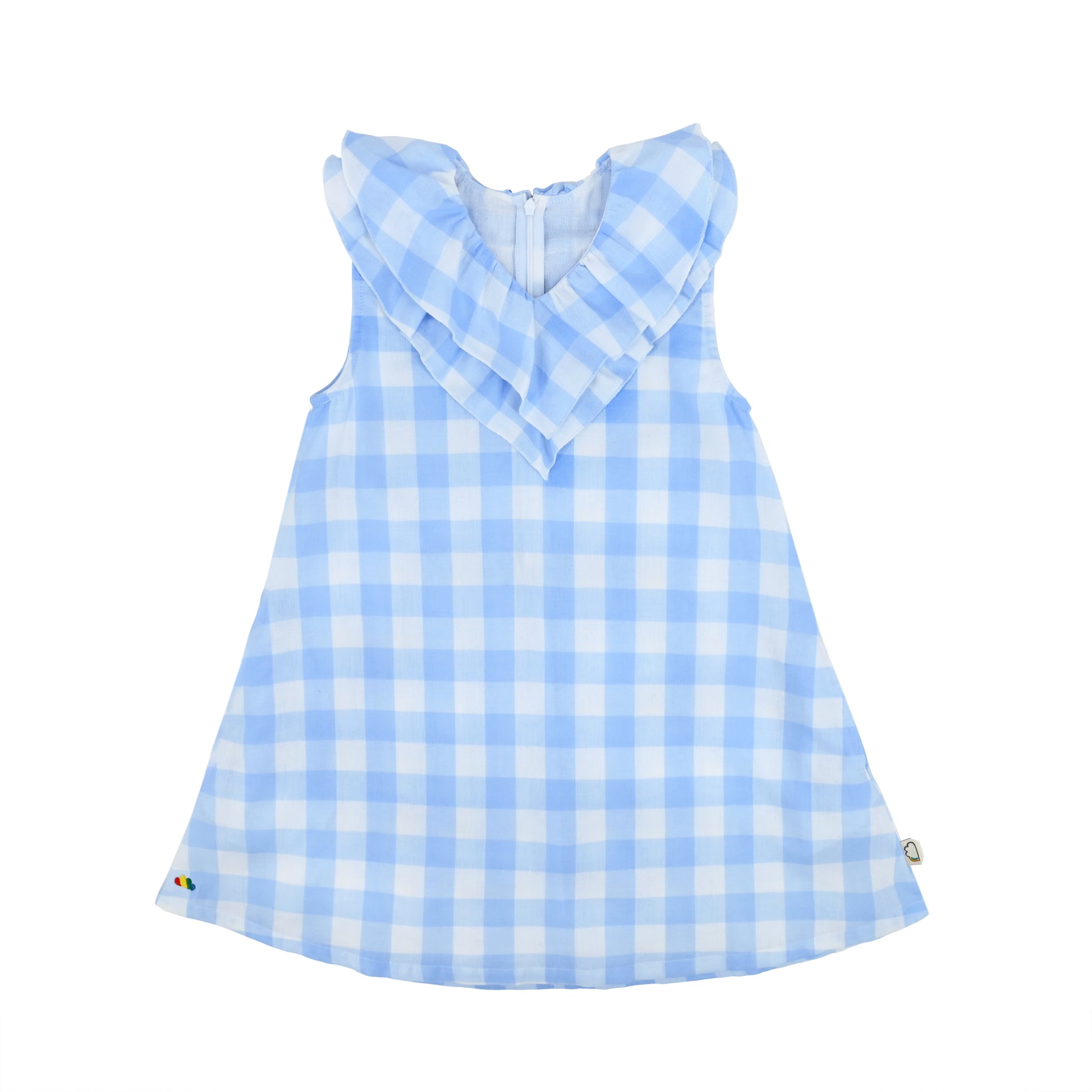 KIDS BLUE CHECK PRINT V-NECK DRESS