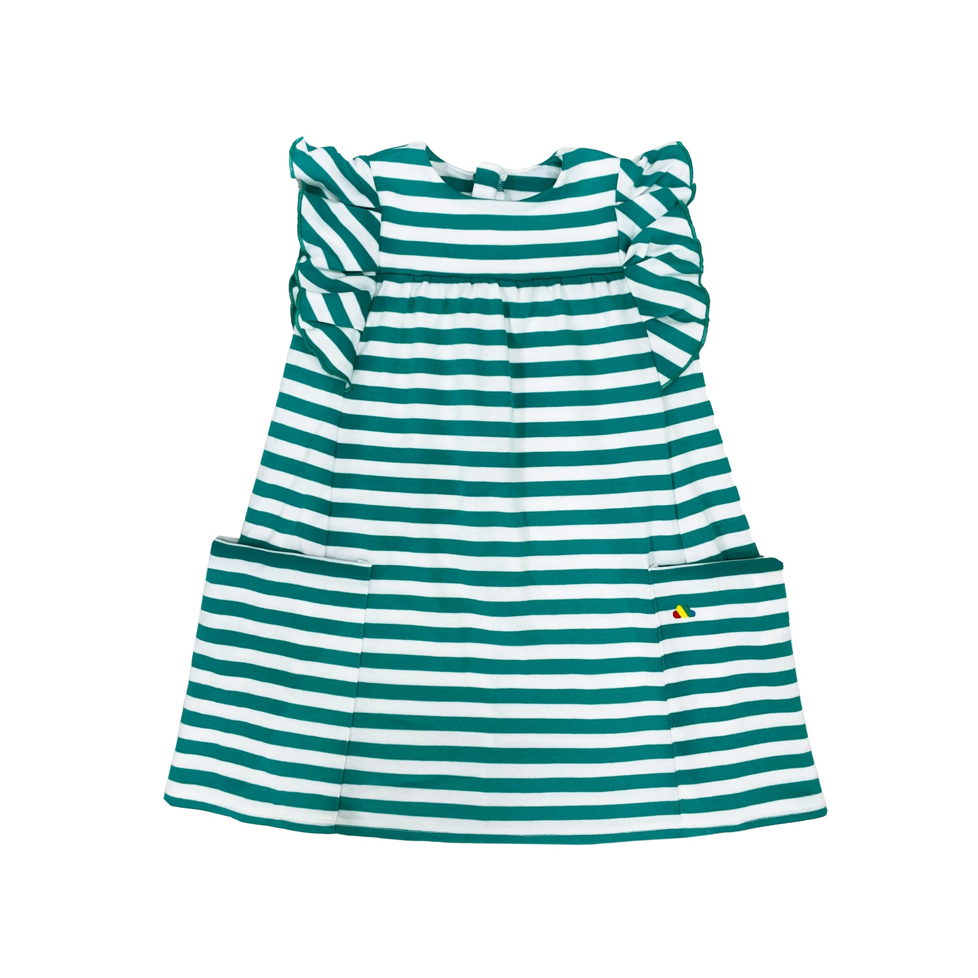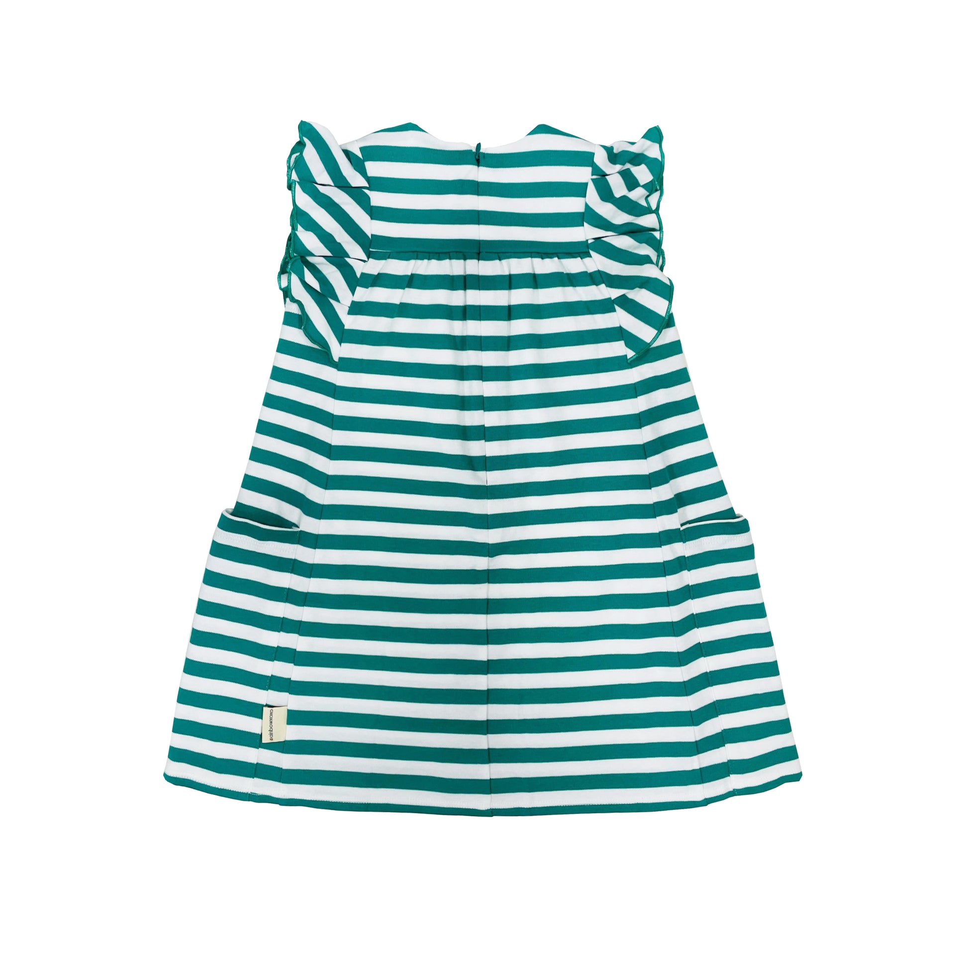 KIDS GREEN STRIPE FRILL SLEEVE DRESS