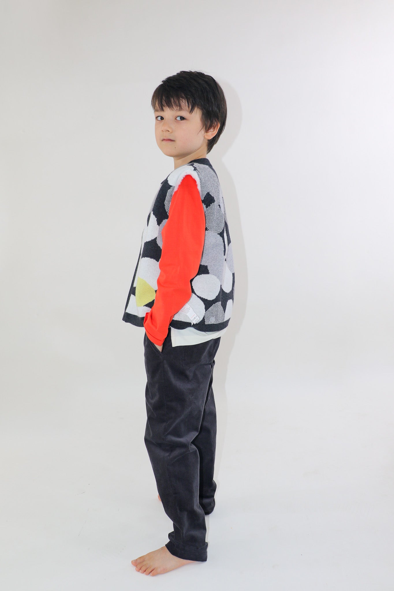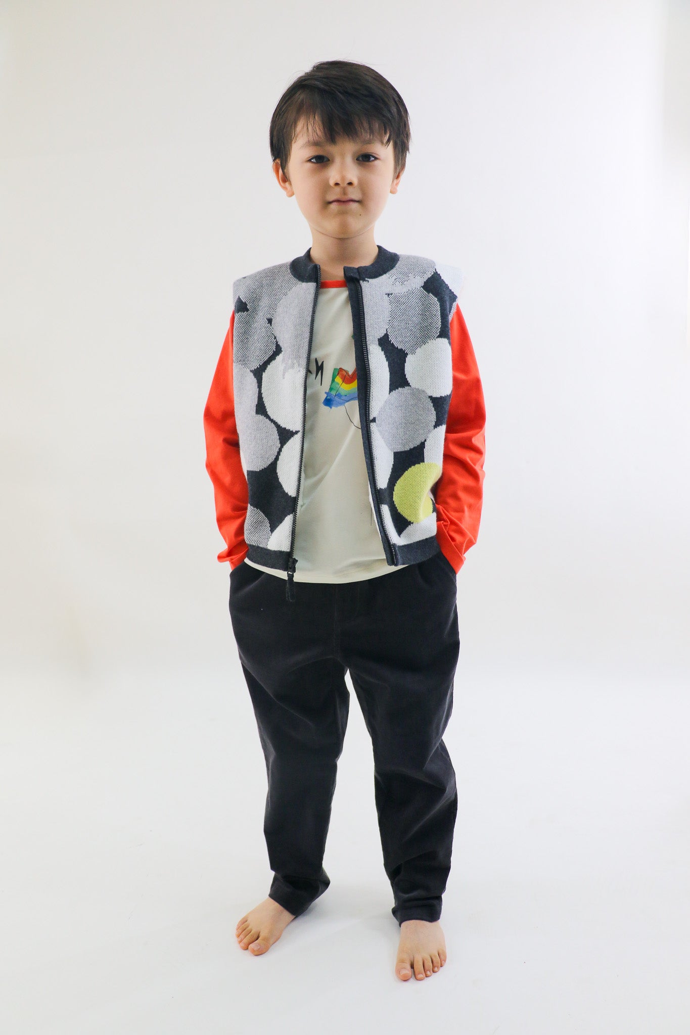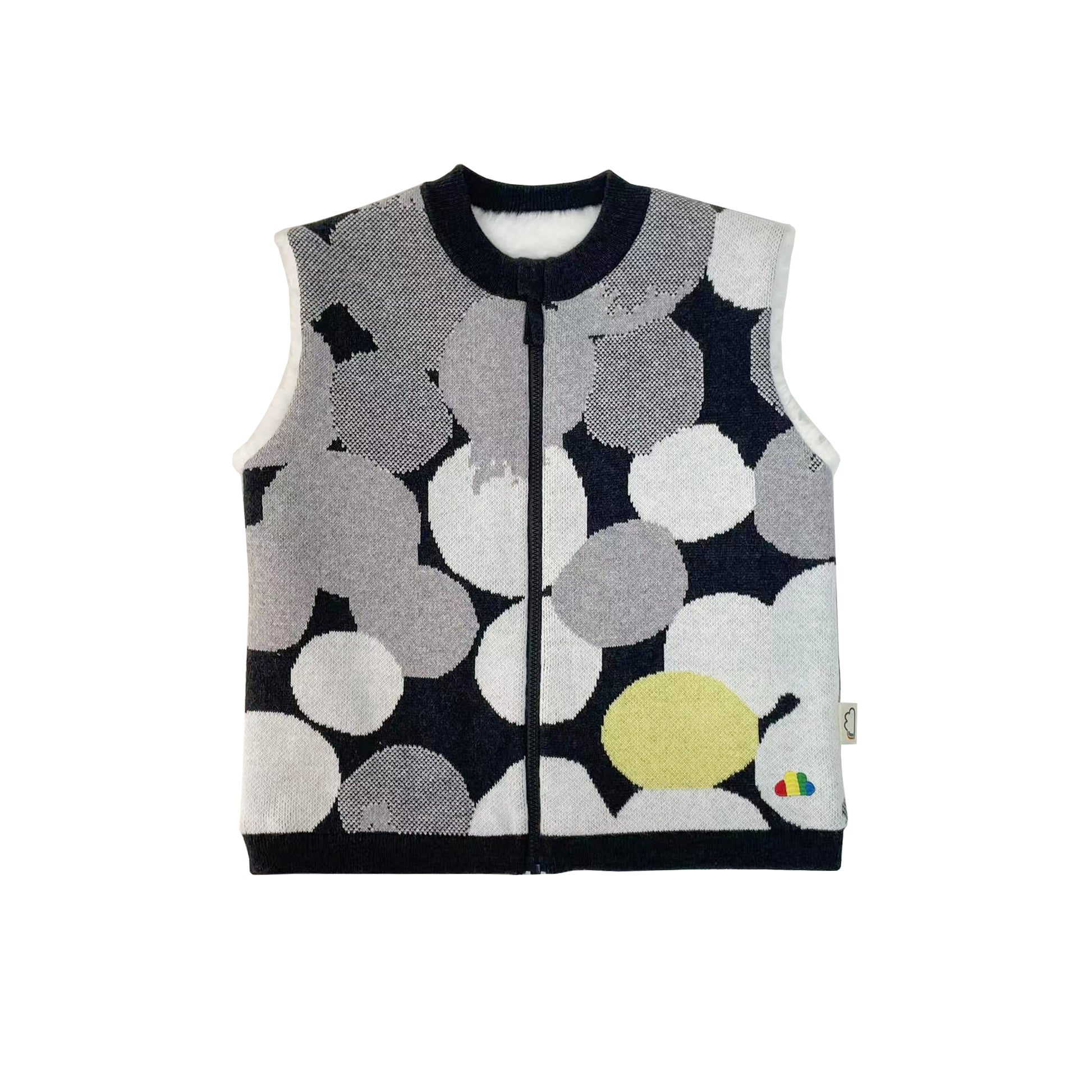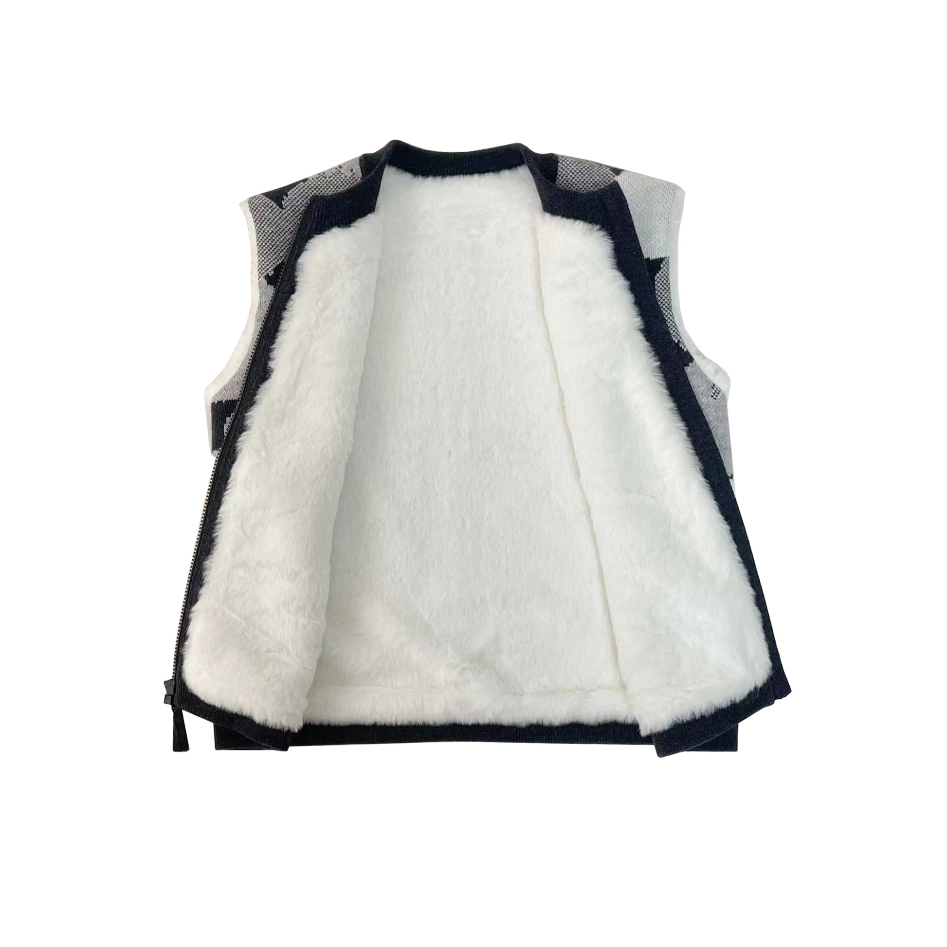KIDS GREY SPOT JACQUARD FUR LINED ZIPPED GILET