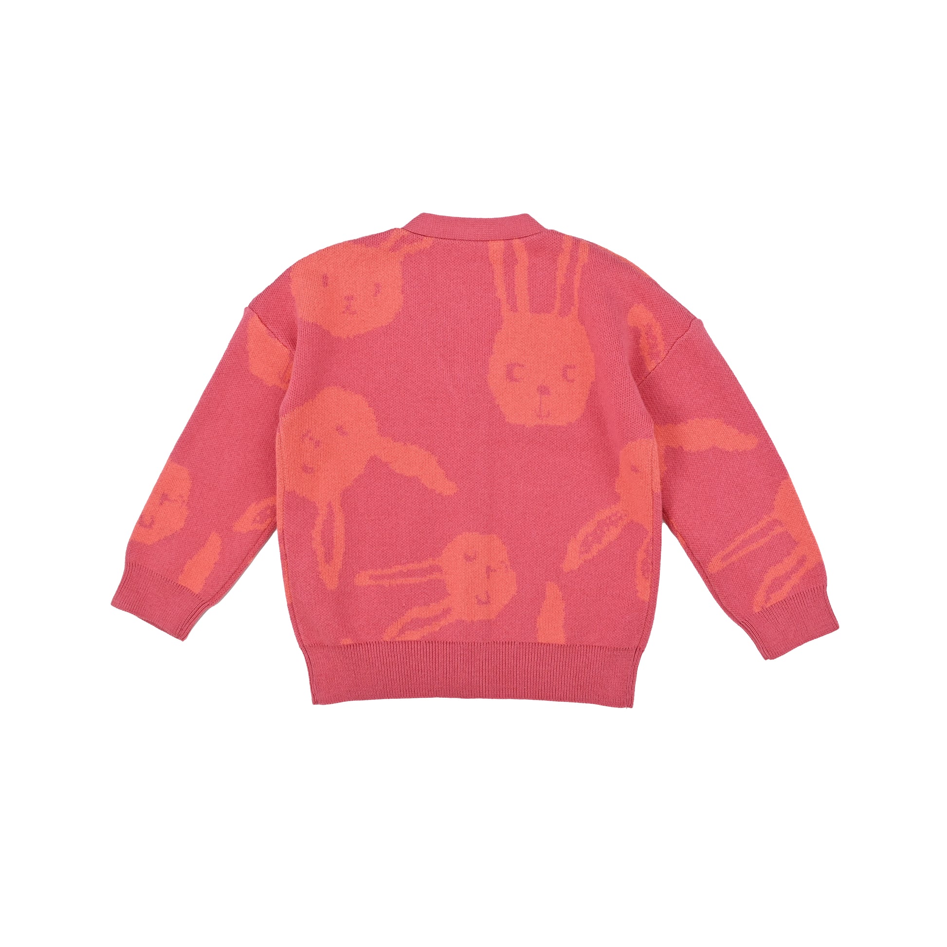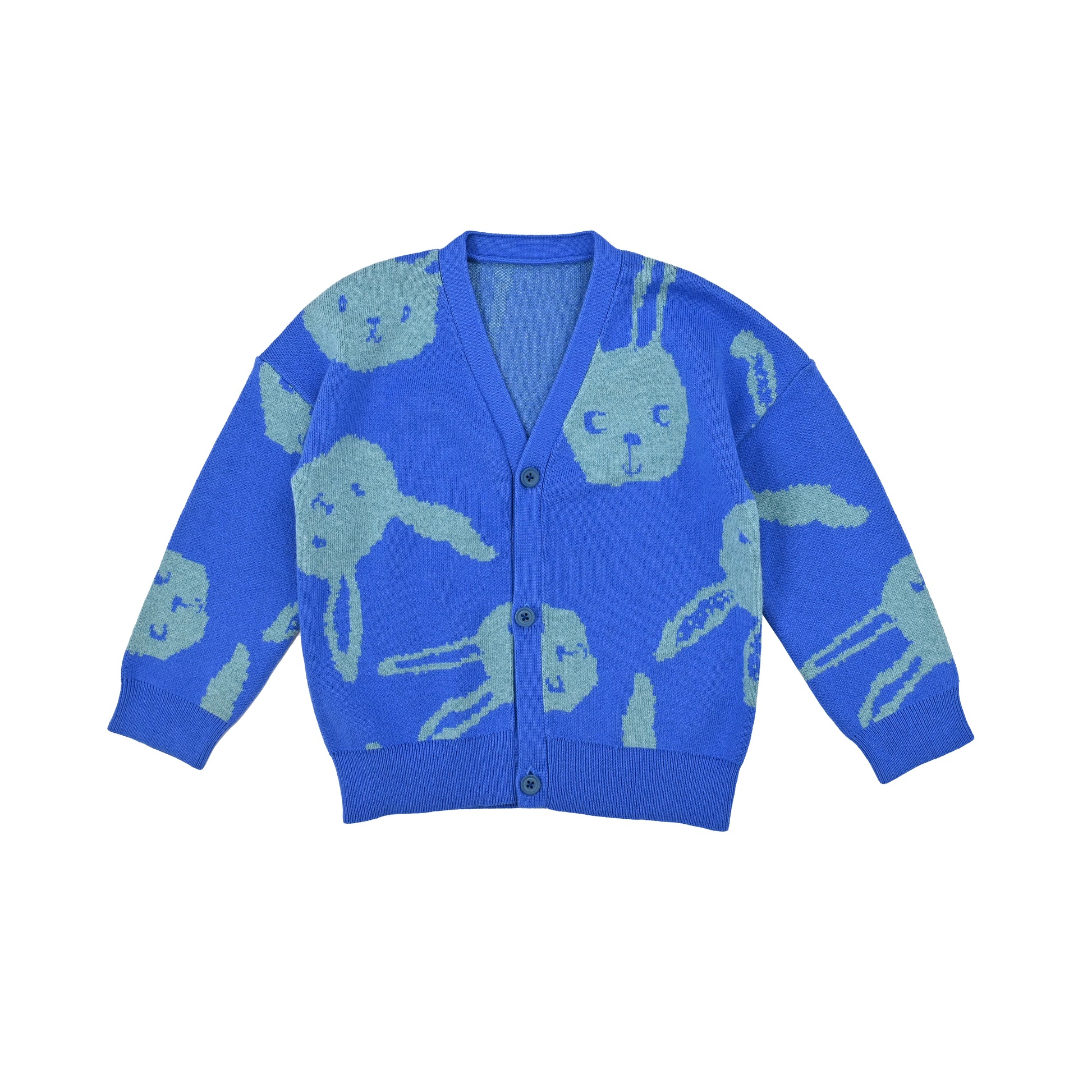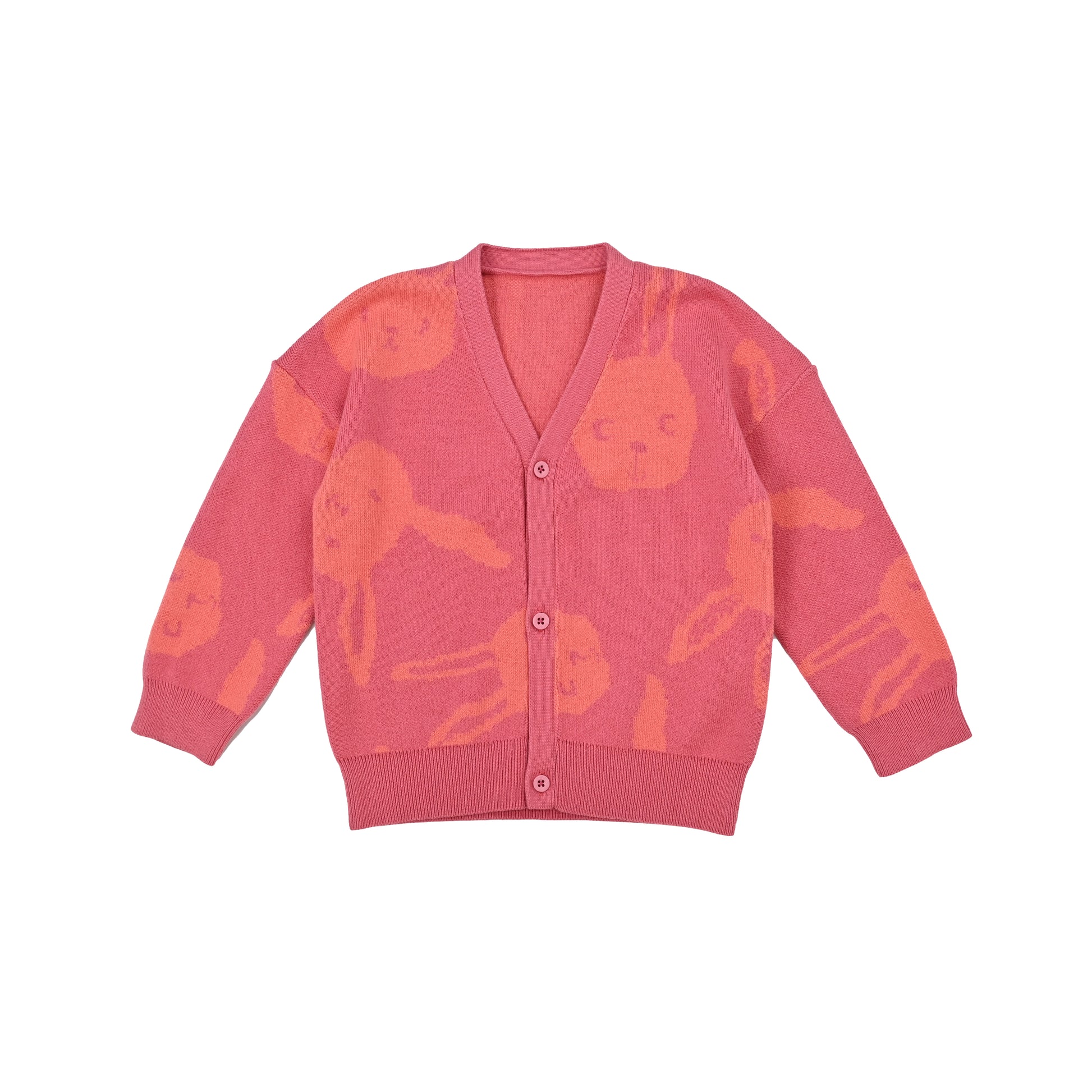 KIDS RABBIT PRINT V-NECK BUTTON CARDIGAN