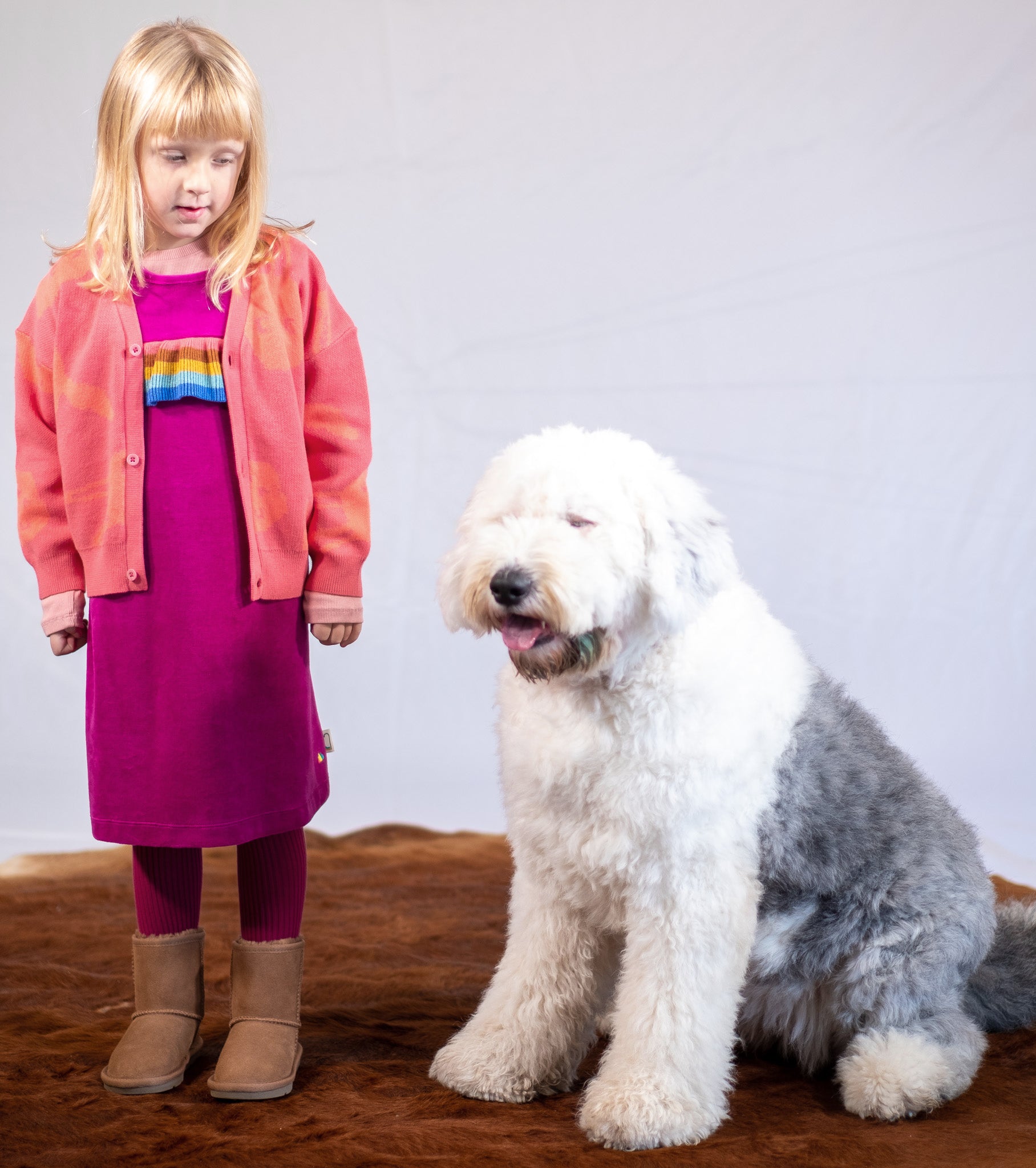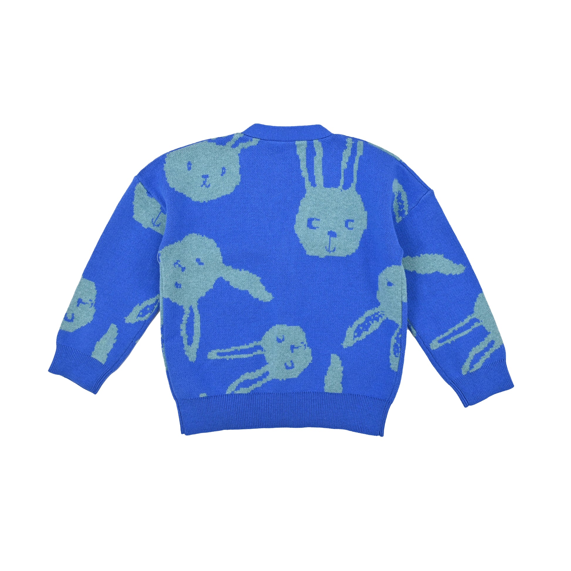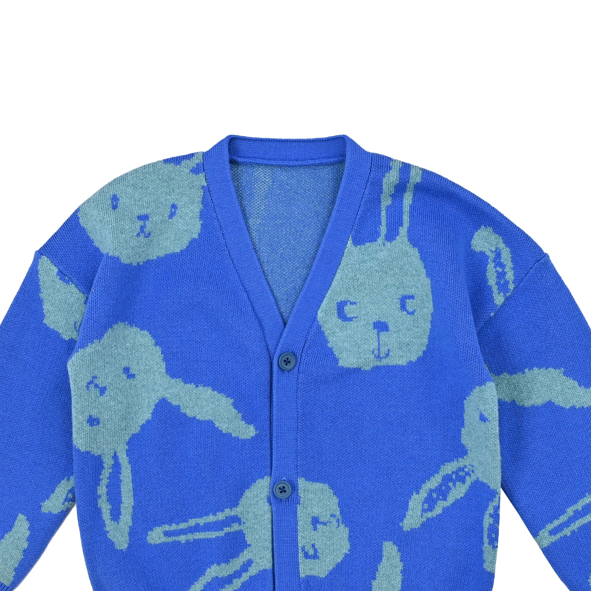 KIDS RABBIT PRINT V-NECK BUTTON CARDIGAN