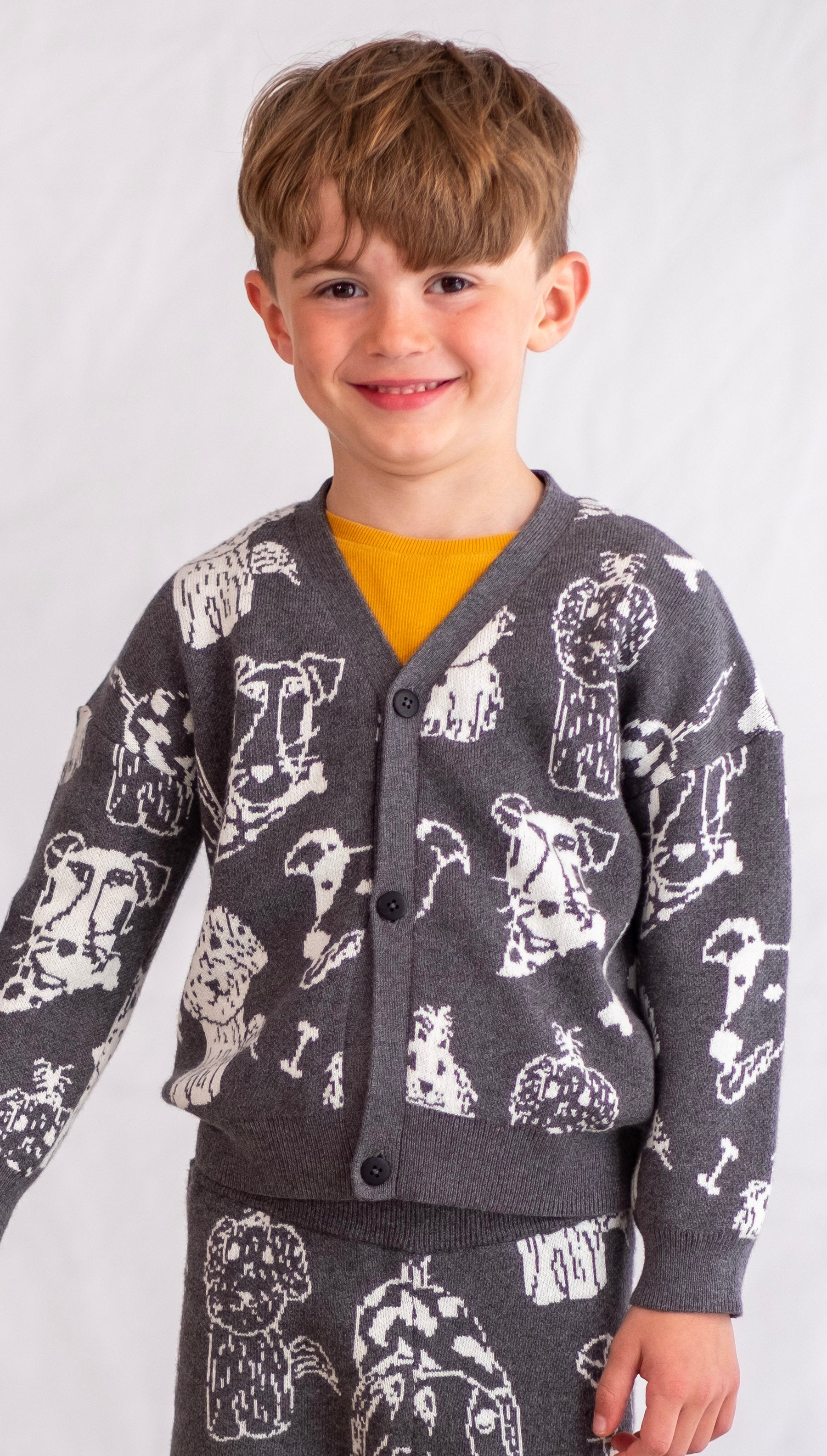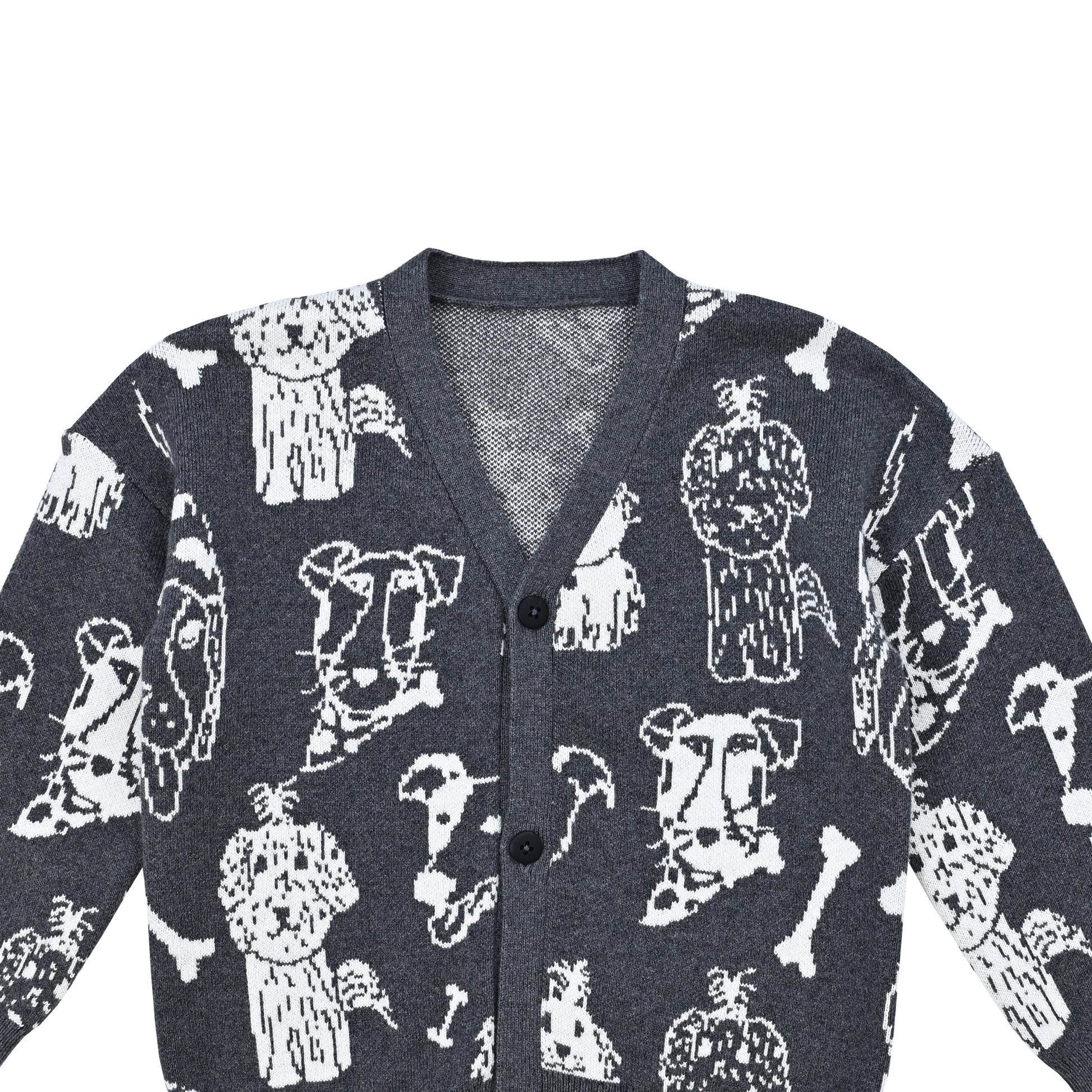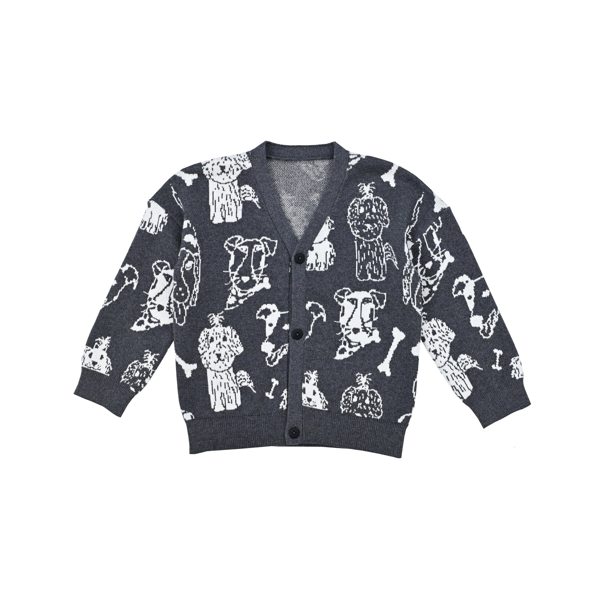 KIDS PETS PRINT V-NECK BUTTON CARDIGAN