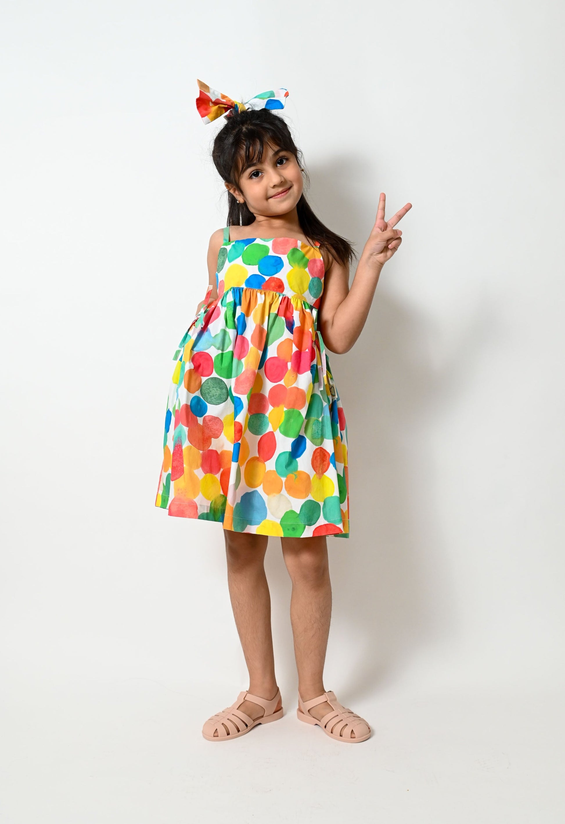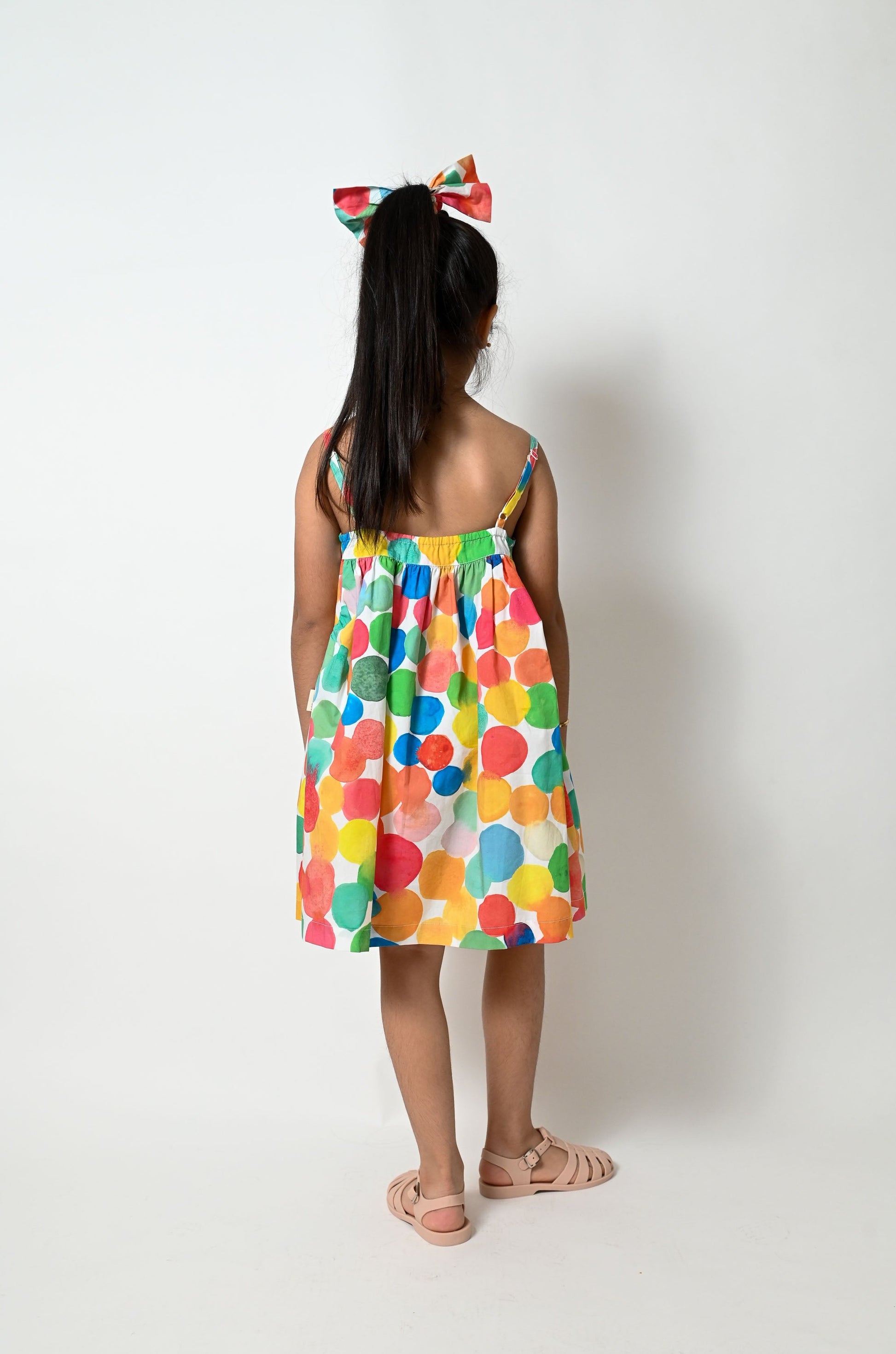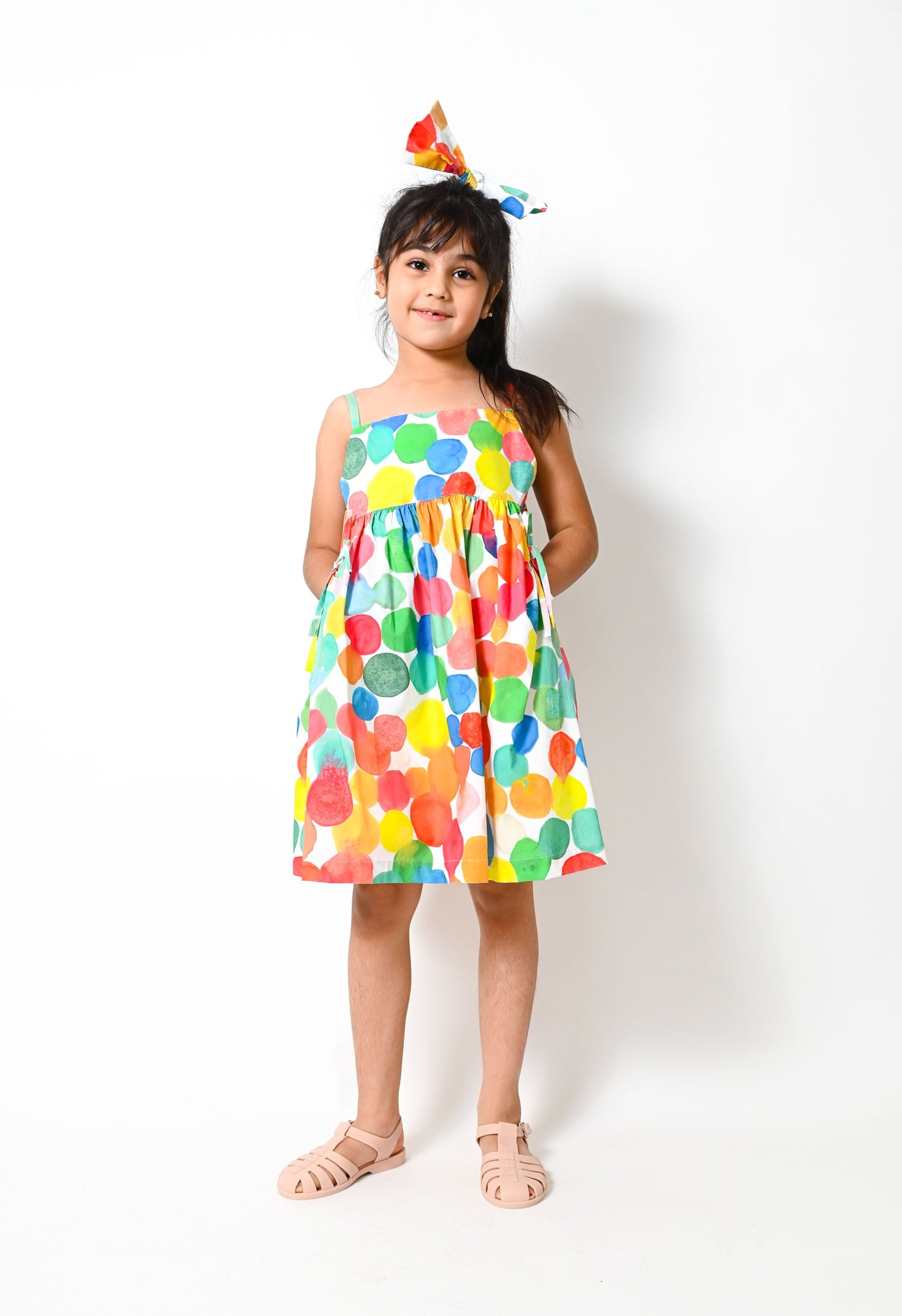 KIDS RAINBOW SPOT PRINT FRILL DRESS