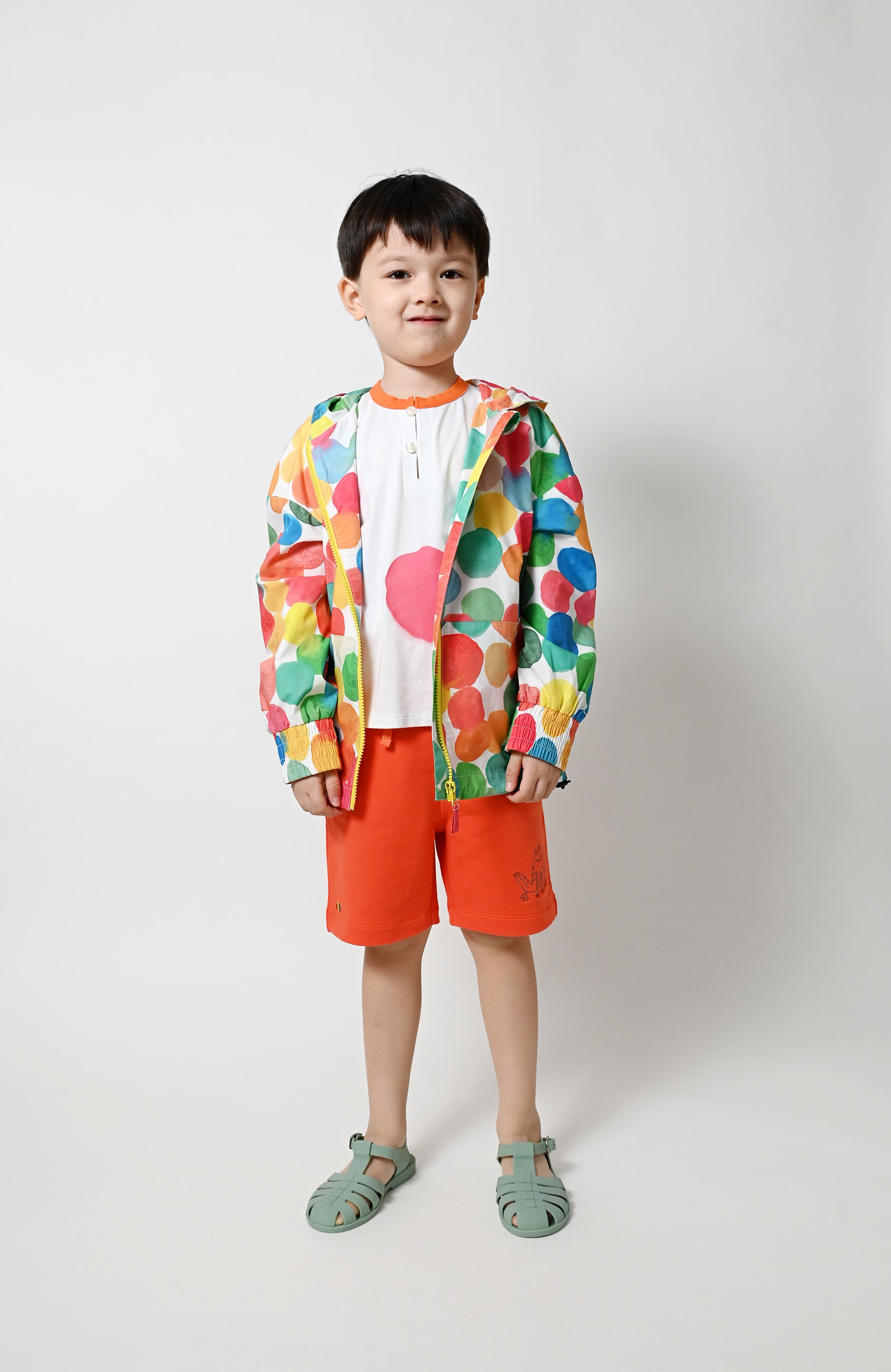 KIDS RAINBOW SPOT PRINT LONG SLEEVE HOODED JACKET