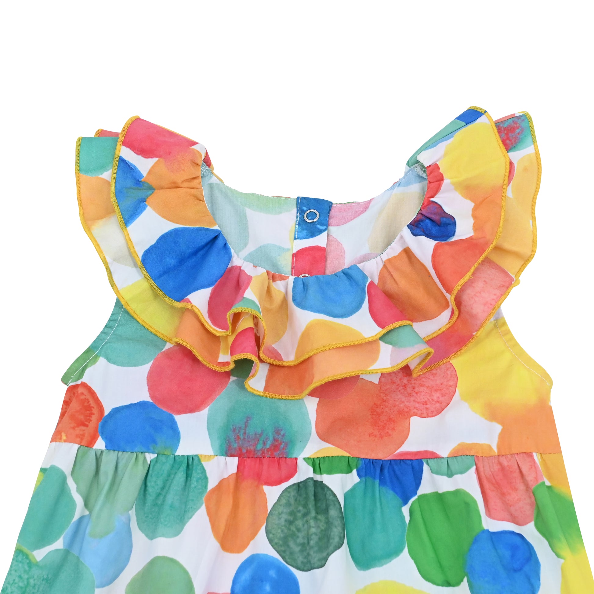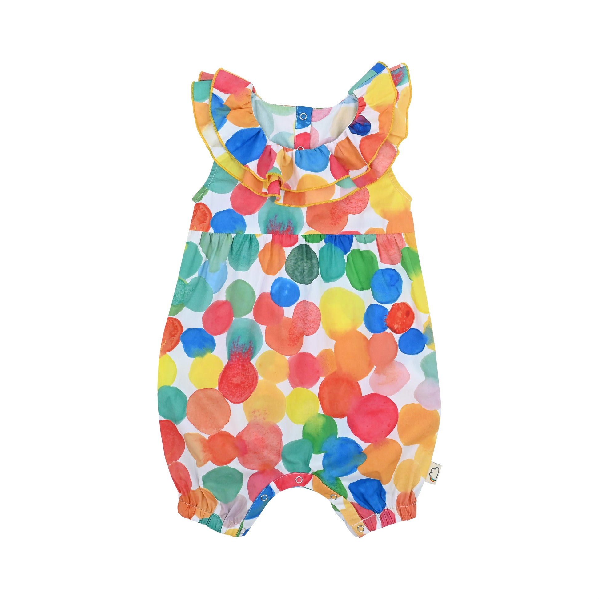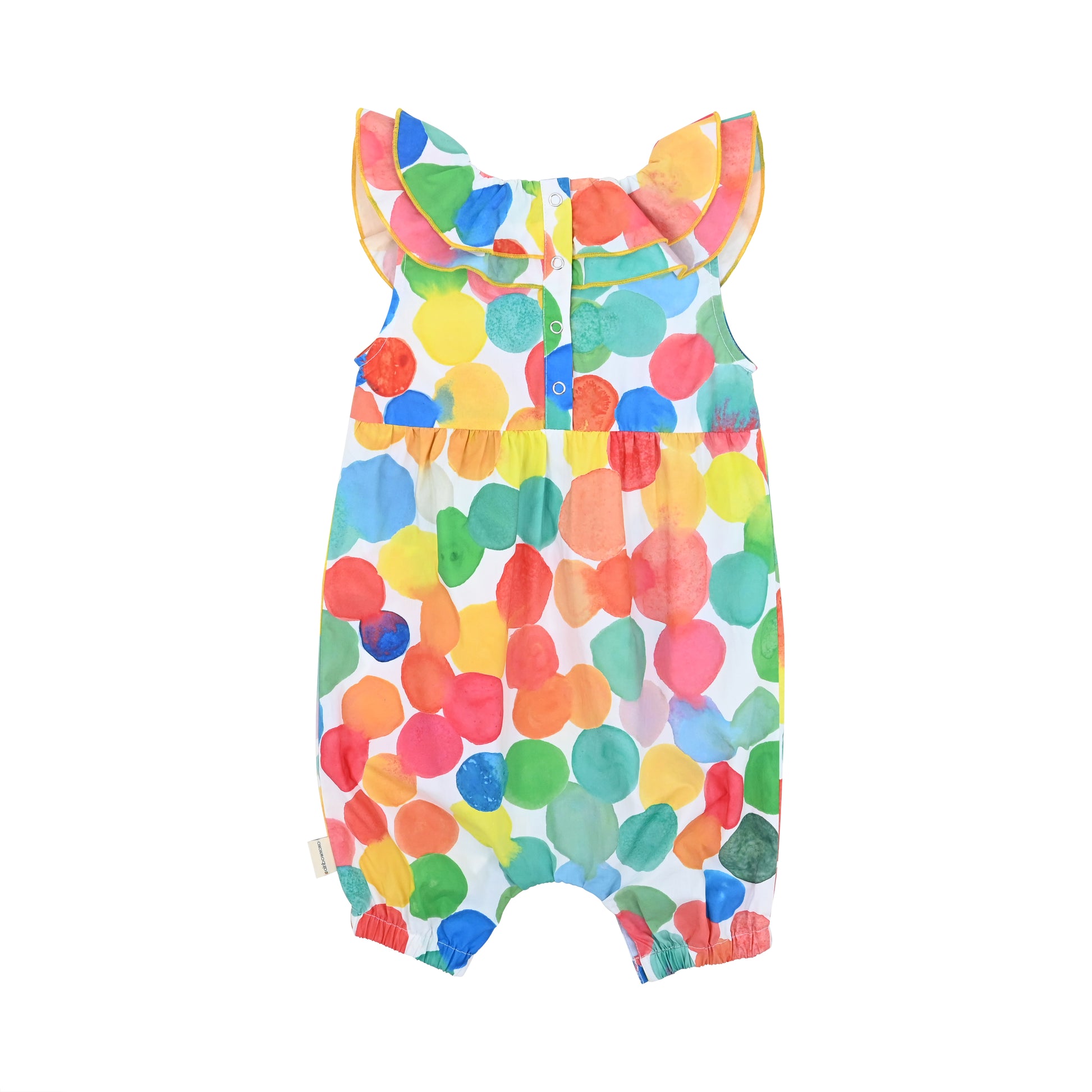 BABY GIRL RAINBOW SPOT PRINT RUFFLES NECK SLEEVELESS PLAYSUIT