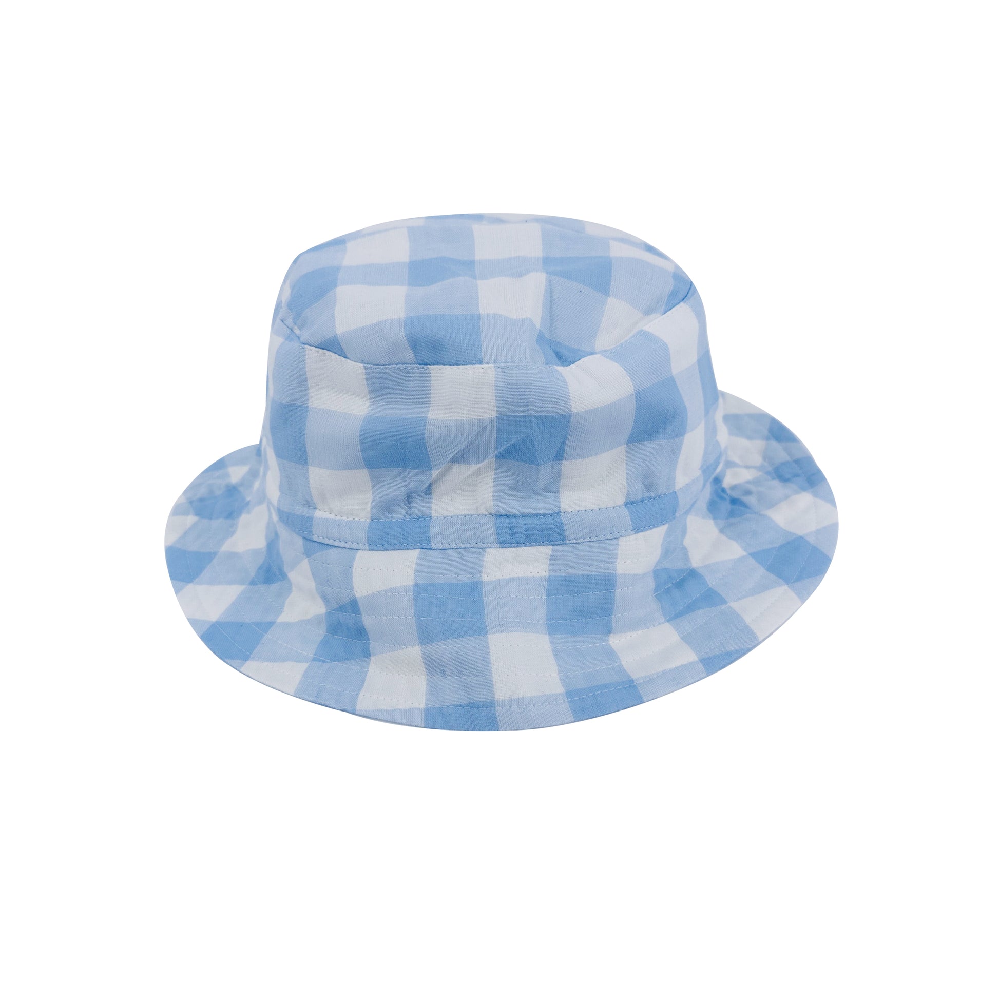 KIDS/WOMEN'S BLUE CHECK PRINT BUCKET HAT