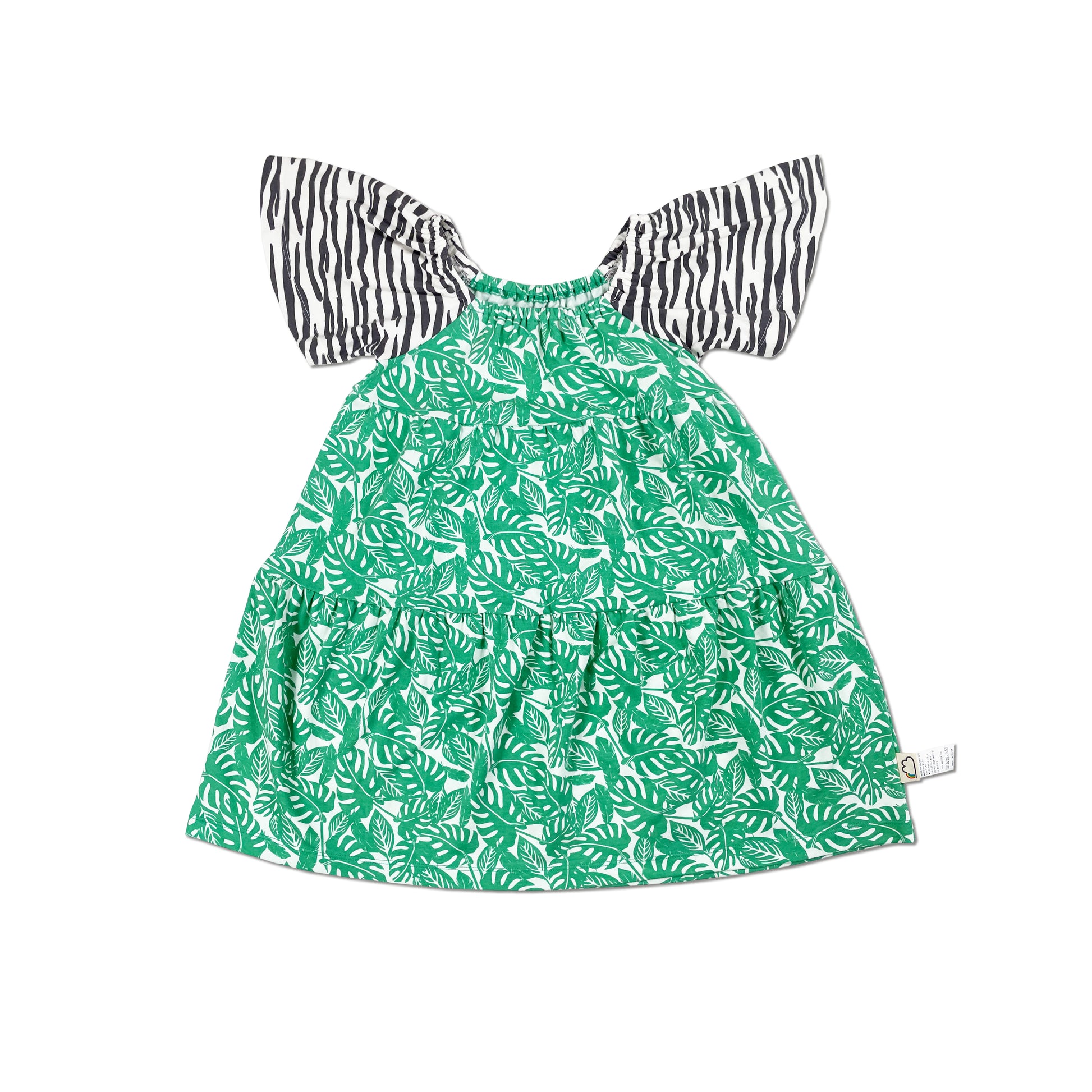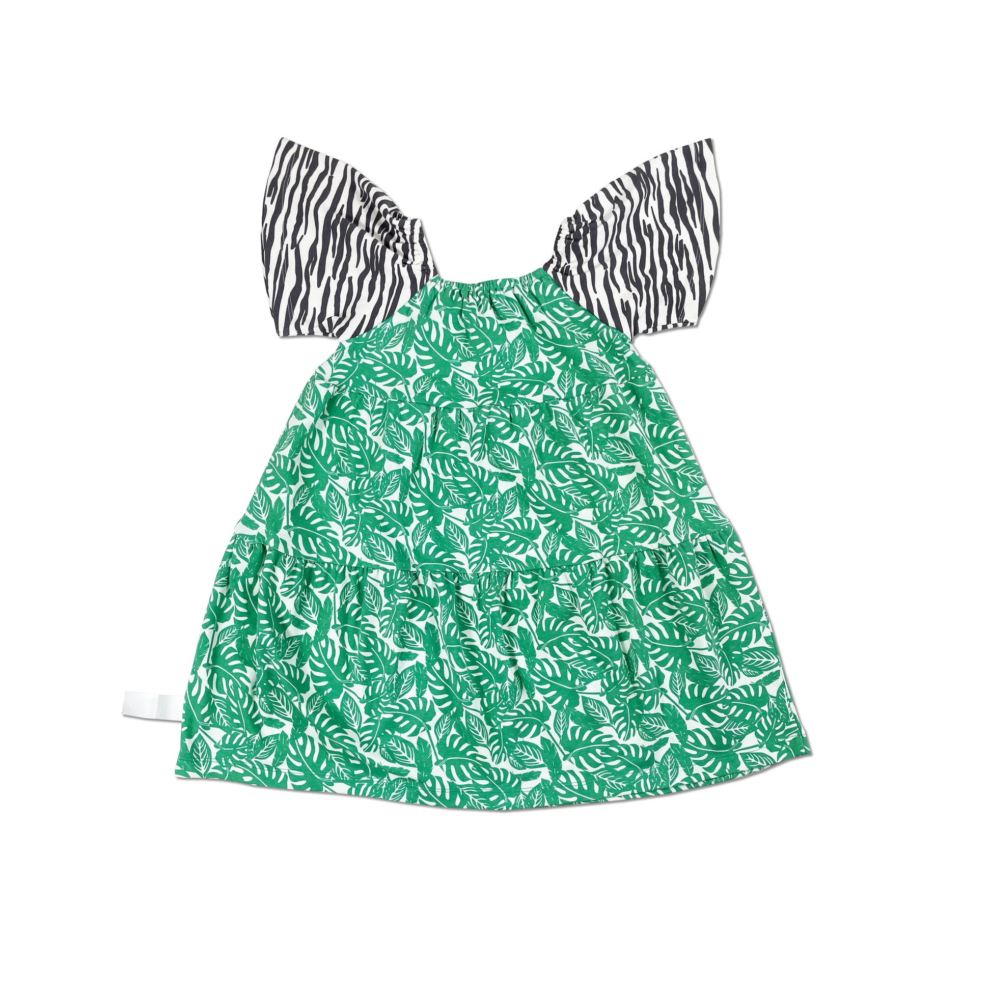 KIDS ZEBRA LEAF PRINTED SQUARE NECK DRESS