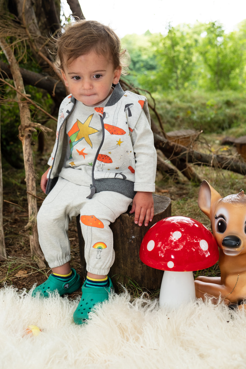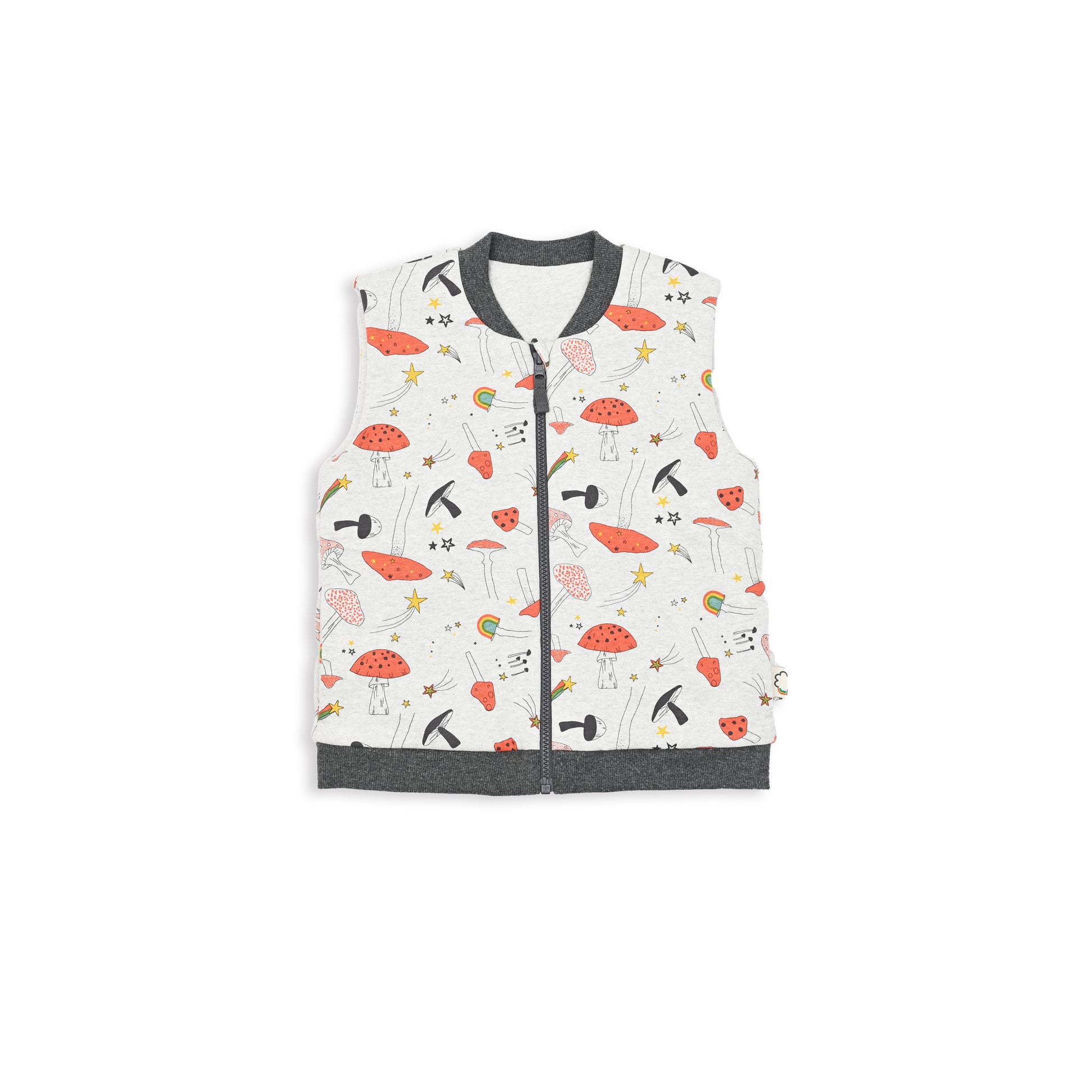 BABY MUSHROOM PRINT FUR LINED ZIPPED GILET