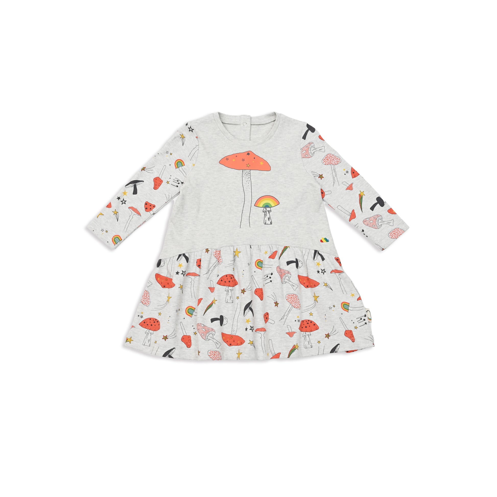 BABY MUSHROOM PRINT LONG-SLEEVES A-LINE DRESS
