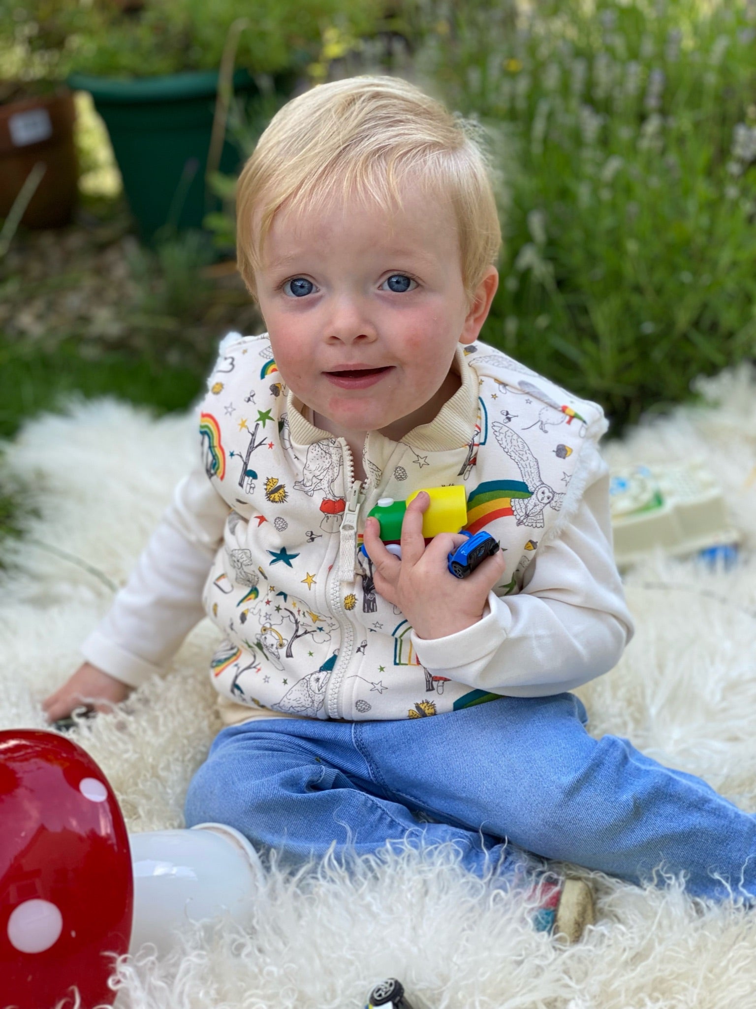 BABY OWL PRINT FUR LINED ZIPPED GILET