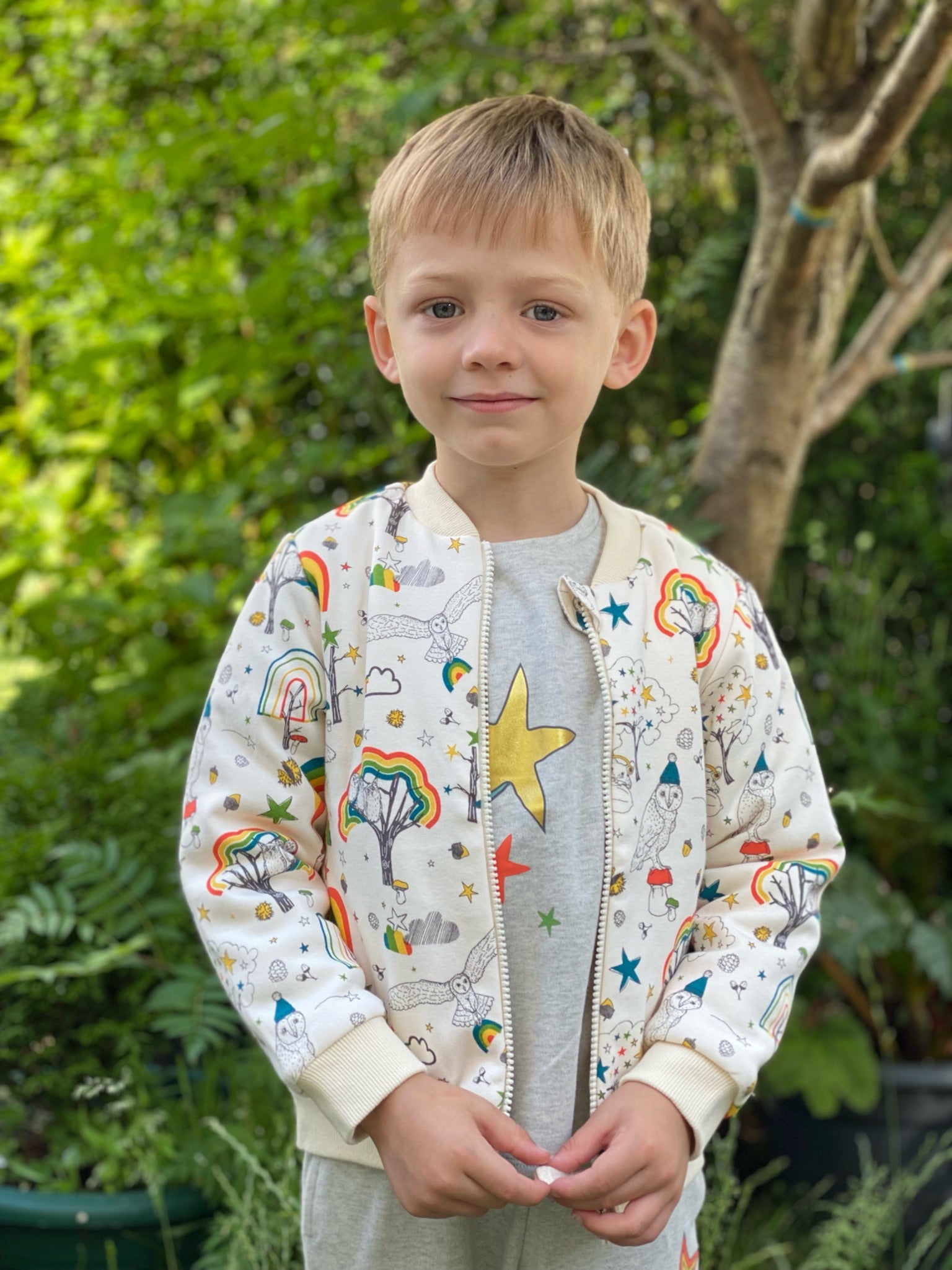 BABY OWL PRINT FUR LINED ZIPPED JACKET