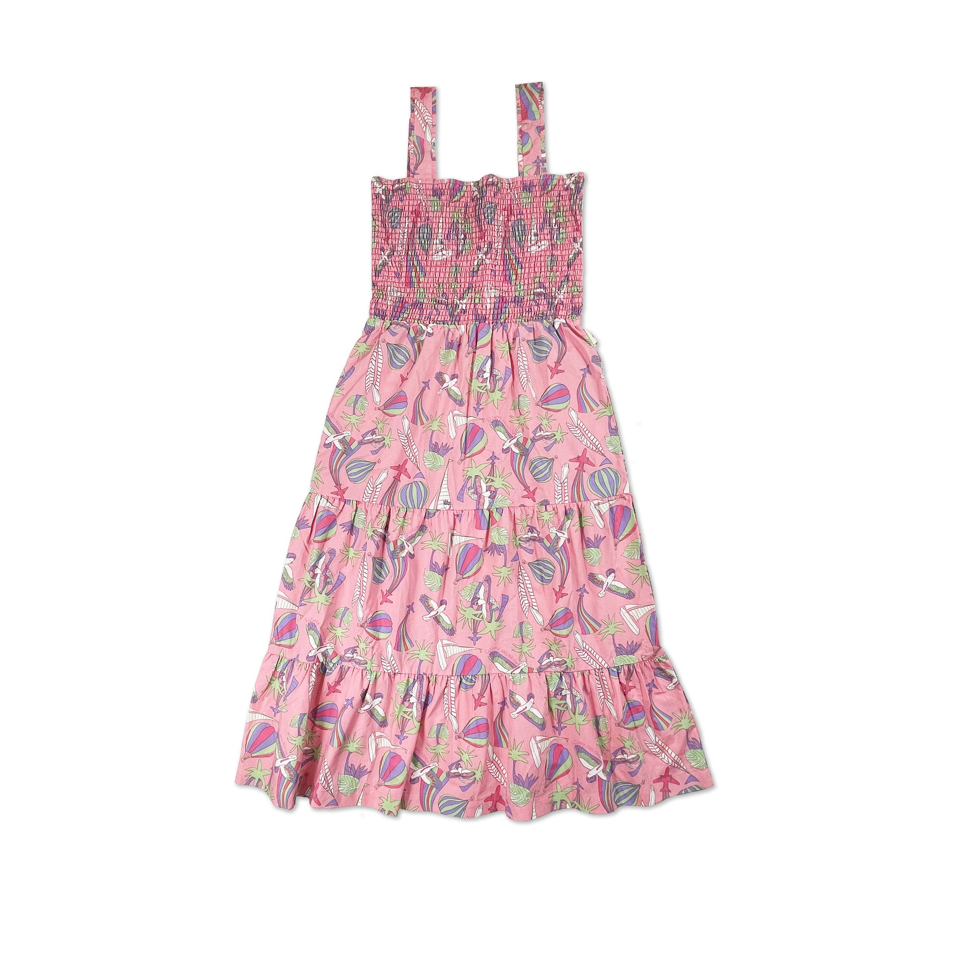 WOMEN PARROT PRINT SHEERED LADIES DRESS