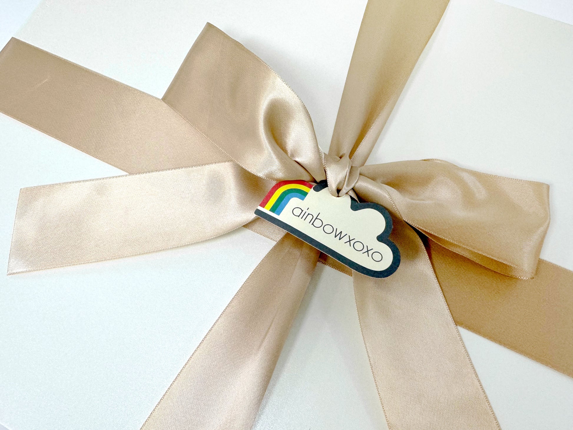 PEARL WHITE AND COFFEE-COLORED RIBBON RECTANGULAR GIFT BOX
