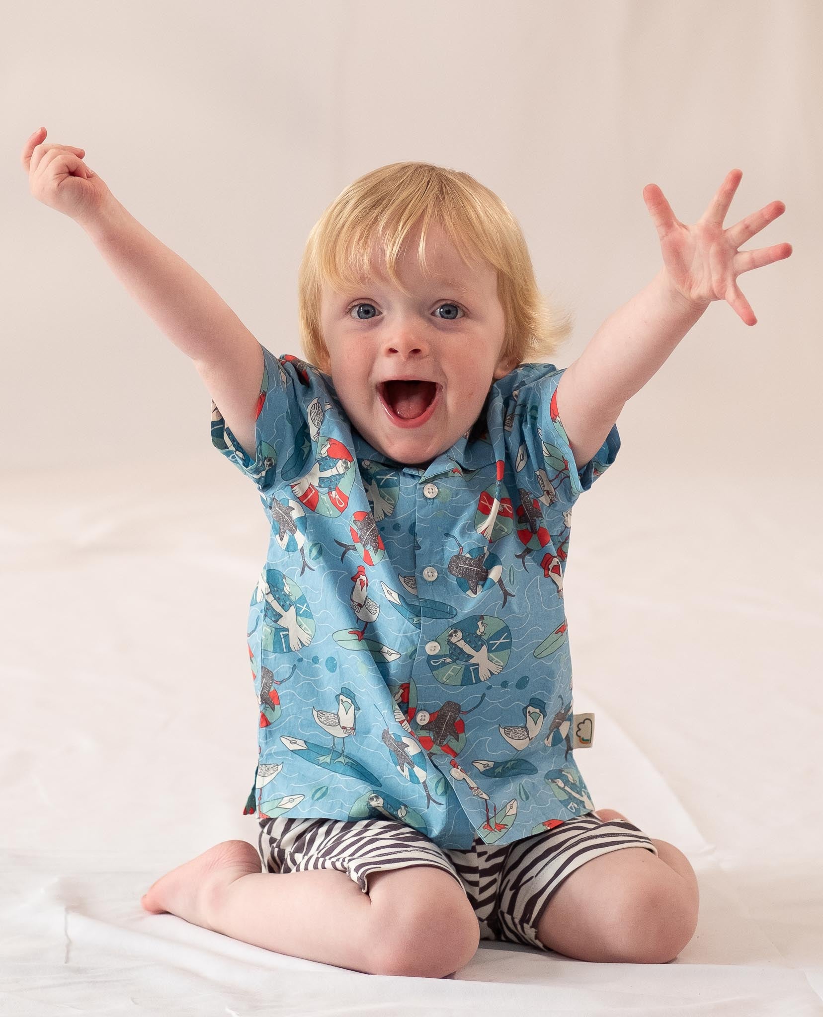 KIDS SEAL PRINT HALF BUTTON SHIRT