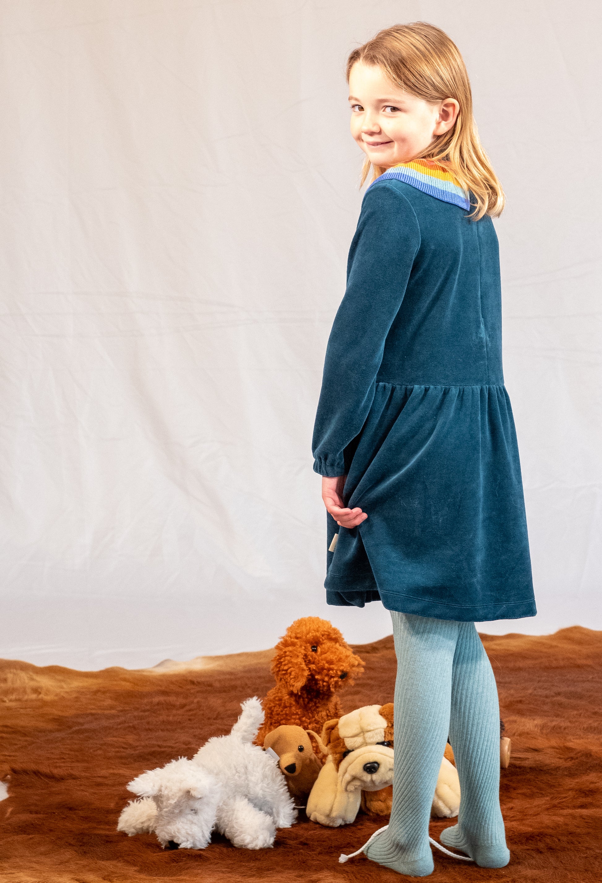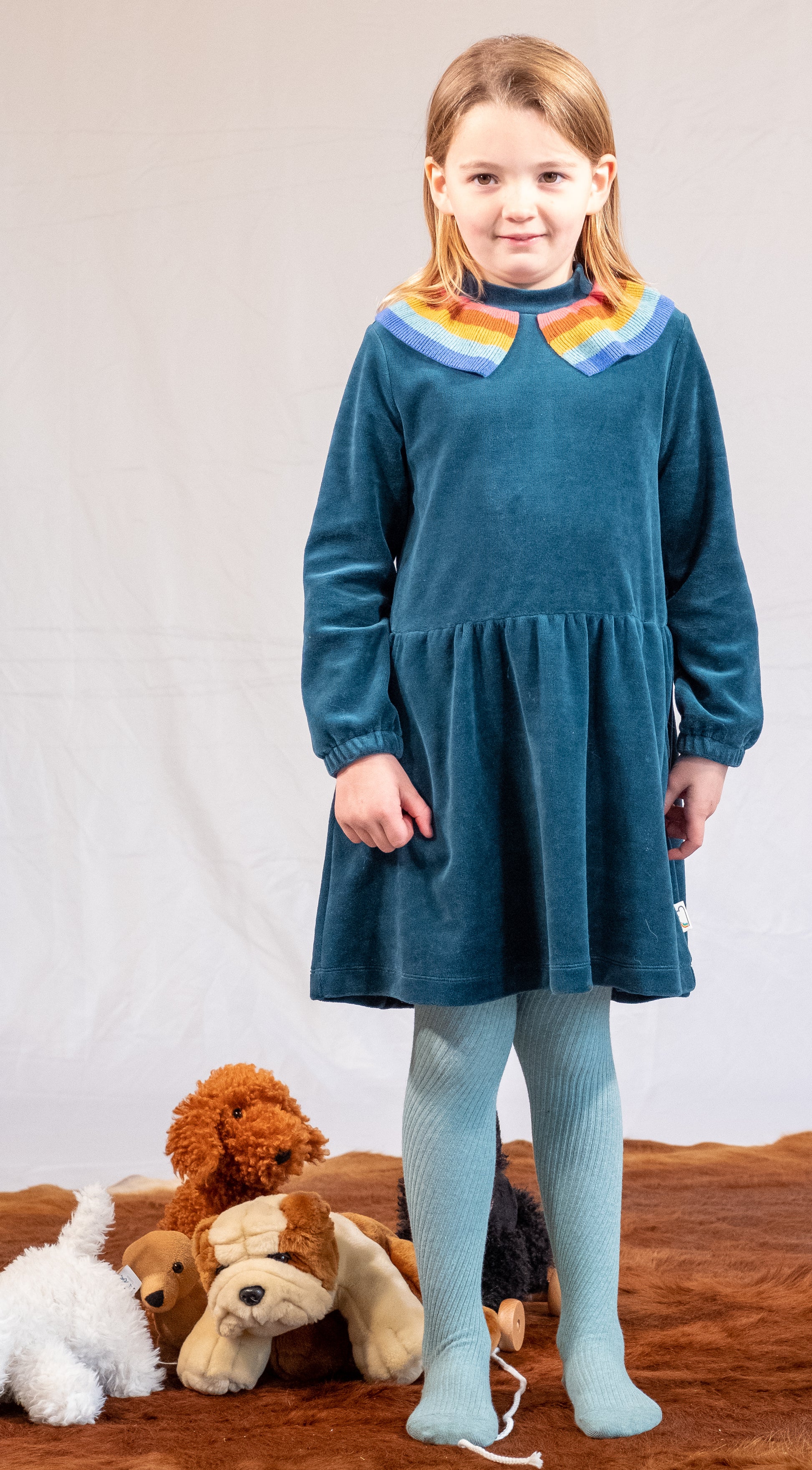 KIDS RAINBOW COLLAR LONG SLEEVES DRESS